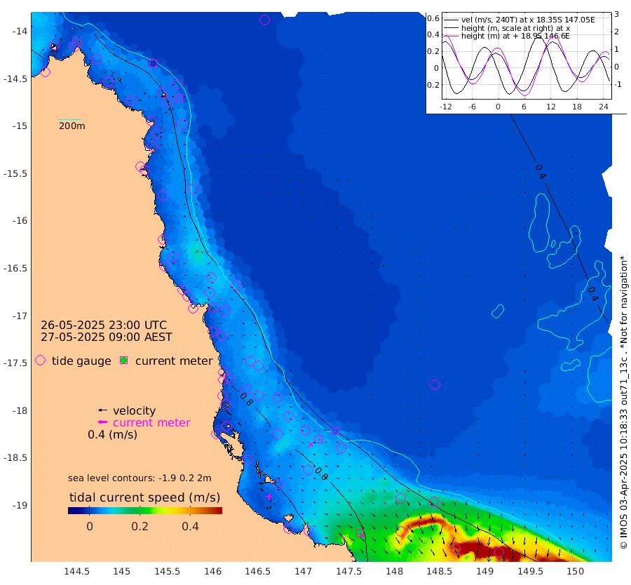 0cm/s -165T +11cm/s rms + 4cm/s -61T. GBRLSL 354m 3cm/s 157T +15cm/s rms + 2cm/s -84T. GBRLSH 32m 6cm/s 97T +15cm/s rms + 5cm/s -155T. GBRPPS 72m 2cm/s 165T +17cm/s rms + 13cm/s 115T. GBRMYR 223m 22cm/s 139T +18cm/s rms + 0cm/s -9T. NRSYON 29m 43cm Osprey Reef - West 57cm Stanley Island 66cm Pipon Islands 48cm Cape Melville 54cm Munro Reef 58cm Leggatt Island 76cm Normanby River 46cm Carter Reef 47cm Lizard Island (QLD) 53cm East Petherbridge Island 45cm North Direction Island 54cm Cape Flattery 47cm Ribbon Reef No.9 57cm Low Wooded Island 42cm Cape Bedford 27cm Endeavour River North 51cm Cooktown 44cm Cruiser Passage 43cm East Hope Island 50cm Bailay Creek 49cm Low Islets 54cm Port Douglas 54cm Palm Cove 53cm Yorkeys Knob 44cm Michaelmas Cay 31cm Euston Reef 57cm Cairns 45cm Green Island 50cm Fitzroy Island 49cm Sudbury Cay 48cm High Island 40cm Russell Island 52cm Peart Reef 49cm Nathan Reef 55cm Mourilyan Harbour 56cm Cowley Beach 57cm North Barnard Island 58cm Eddy Reef 75cm Beaver Reef 50cm Unnamed Reef No. 1 35cm Flinders Reef 61cm Clump Point 64cm Dunk Island 49cm Barnett Patches 66cm Goold Island 80cm Cardwell 58cm Britomart Reef 44cm Pith Reef 46cm Dip Reef 71cm Lucinda (Offshore) 58cm John Brewer Reef 73cm Albino Rock 46cm Shrimp Reef 41cm Jaguar Reef 77cm Townsville 69cm Cape Ferguson 58cm Stanley Reef 50cm Wallaby Reef 52cm Kennedy Reef