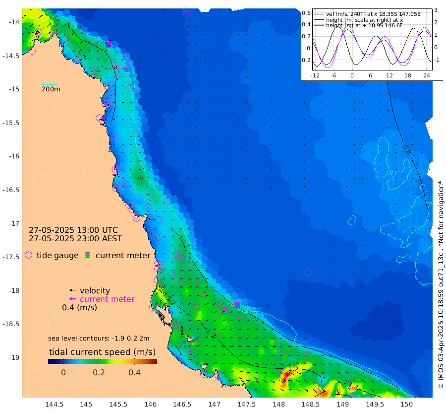 2cm/s -71T +11cm/s rms + 4cm/s -61T. GBRLSL 354m 5cm/s 65T +15cm/s rms + 2cm/s -84T. GBRLSH 32m 14cm/s 75T +15cm/s rms + 5cm/s -155T. GBRPPS 72m 4cm/s 73T +17cm/s rms + 13cm/s 115T. GBRMYR 223m 25cm/s 122T +18cm/s rms + 0cm/s -9T. NRSYON 29m 95cm Osprey Reef - West 112cm Stanley Island 86cm Pipon Islands 104cm Cape Melville 112cm Munro Reef 113cm Leggatt Island 121cm Normanby River 109cm Carter Reef 106cm Lizard Island (QLD) 103cm East Petherbridge Island 98cm North Direction Island 108cm Cape Flattery 103cm Ribbon Reef No.9 106cm Low Wooded Island 92cm Cape Bedford 66cm Endeavour River North 105cm Cooktown 99cm Cruiser Passage 102cm East Hope Island 98cm Bailay Creek 98cm Low Islets 107cm Port Douglas 106cm Palm Cove 107cm Yorkeys Knob 103cm Michaelmas Cay 79cm Euston Reef 111cm Cairns 99cm Green Island 104cm Fitzroy Island 105cm Sudbury Cay 104cm High Island 86cm Russell Island 105cm Peart Reef 102cm Nathan Reef 112cm Mourilyan Harbour 109cm Cowley Beach 123cm North Barnard Island 111cm Eddy Reef 144cm Beaver Reef 108cm Unnamed Reef No. 1 92cm Flinders Reef 116cm Clump Point 122cm Dunk Island 107cm Barnett Patches 125cm Goold Island 139cm Cardwell 110cm Britomart Reef 103cm Pith Reef 106cm Dip Reef 128cm Lucinda (Offshore) 121cm John Brewer Reef 125cm Albino Rock 112cm Shrimp Reef 101cm Jaguar Reef 133cm Townsville 127cm Cape Ferguson 133cm Stanley Reef 135cm Wallaby Reef 125cm Kennedy Reef