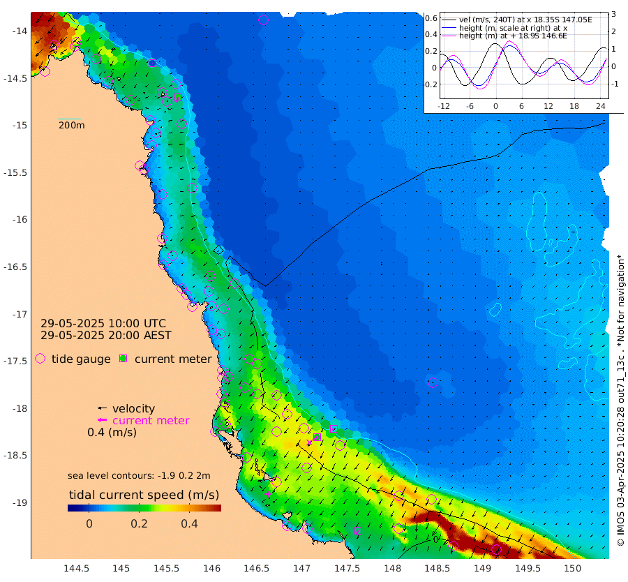 1cm/s -174T +11cm/s rms + 4cm/s -61T. GBRLSL 354m 23cm/s -161T +15cm/s rms + 2cm/s -84T. GBRLSH 32m 20cm/s -138T +15cm/s rms + 5cm/s -155T. GBRPPS 72m 9cm/s -137T +17cm/s rms + 13cm/s 115T. GBRMYR 223m 15cm/s -154T +18cm/s rms + 0cm/s -9T. NRSYON 29m 15cm Osprey Reef - West 0cm Stanley Island -12cm Pipon Islands -3cm Cape Melville 1cm Munro Reef 1cm Leggatt Island 1cm Normanby River 0cm Carter Reef 5cm Lizard Island (QLD) 5cm East Petherbridge Island 7cm North Direction Island 9cm Cape Flattery 14cm Ribbon Reef No.9 13cm Low Wooded Island 8cm Cape Bedford 16cm Endeavour River North 9cm Cooktown 17cm Cruiser Passage 14cm East Hope Island -2cm Bailay Creek 7cm Low Islets 10cm Port Douglas 14cm Palm Cove 12cm Yorkeys Knob 8cm Michaelmas Cay 27cm Euston Reef 9cm Cairns 20cm Green Island 10cm Fitzroy Island 14cm Sudbury Cay 9cm High Island 20cm Russell Island 12cm Peart Reef 11cm Nathan Reef 9cm Mourilyan Harbour 14cm Cowley Beach -11cm North Barnard Island 16cm Eddy Reef 12cm Beaver Reef 17cm Unnamed Reef No. 1 25cm Flinders Reef 11cm Clump Point 7cm Dunk Island 14cm Barnett Patches 11cm Goold Island -2cm Cardwell 16cm Britomart Reef 16cm Pith Reef 23cm Dip Reef 8cm Lucinda (Offshore) -2cm John Brewer Reef 18cm Albino Rock 11cm Shrimp Reef 21cm Jaguar Reef 11cm Townsville 12cm Cape Ferguson -10cm Stanley Reef -12cm Wallaby Reef 1cm Kennedy Reef