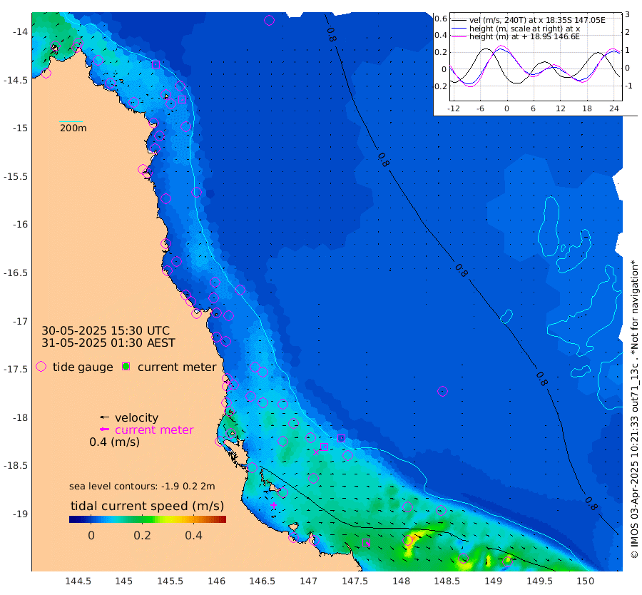3cm/s -66T +11cm/s rms + 4cm/s -61T. GBRLSL 354m 4cm/s 164T +15cm/s rms + 2cm/s -84T. GBRLSH 32m 7cm/s 98T +15cm/s rms + 5cm/s -155T. GBRPPS 72m 2cm/s 112T +17cm/s rms + 13cm/s 115T. GBRMYR 223m 18cm/s 129T +18cm/s rms + 0cm/s -9T. NRSYON 29m 86cm Osprey Reef - West 94cm Stanley Island 76cm Pipon Islands 91cm Cape Melville 95cm Munro Reef 96cm Leggatt Island 102cm Normanby River 93cm Carter Reef 94cm Lizard Island (QLD) 89cm East Petherbridge Island 87cm North Direction Island 91cm Cape Flattery 91cm Ribbon Reef No.9 102cm Low Wooded Island 82cm Cape Bedford 63cm Endeavour River North 93cm Cooktown 90cm Cruiser Passage 90cm East Hope Island 90cm Bailay Creek 87cm Low Islets 94cm Port Douglas 95cm Palm Cove 98cm Yorkeys Knob 90cm Michaelmas Cay 69cm Euston Reef 97cm Cairns 90cm Green Island 89cm Fitzroy Island 92cm Sudbury Cay 98cm High Island 80cm Russell Island 94cm Peart Reef 93cm Nathan Reef 97cm Mourilyan Harbour 95cm Cowley Beach 106cm North Barnard Island 95cm Eddy Reef 126cm Beaver Reef 96cm Unnamed Reef No. 1 82cm Flinders Reef 101cm Clump Point 106cm Dunk Island 99cm Barnett Patches 110cm Goold Island 115cm Cardwell 101cm Britomart Reef 95cm Pith Reef 97cm Dip Reef 109cm Lucinda (Offshore) 103cm John Brewer Reef 105cm Albino Rock 100cm Shrimp Reef 89cm Jaguar Reef 113cm Townsville 109cm Cape Ferguson 117cm Stanley Reef 112cm Wallaby Reef 105cm Kennedy Reef
