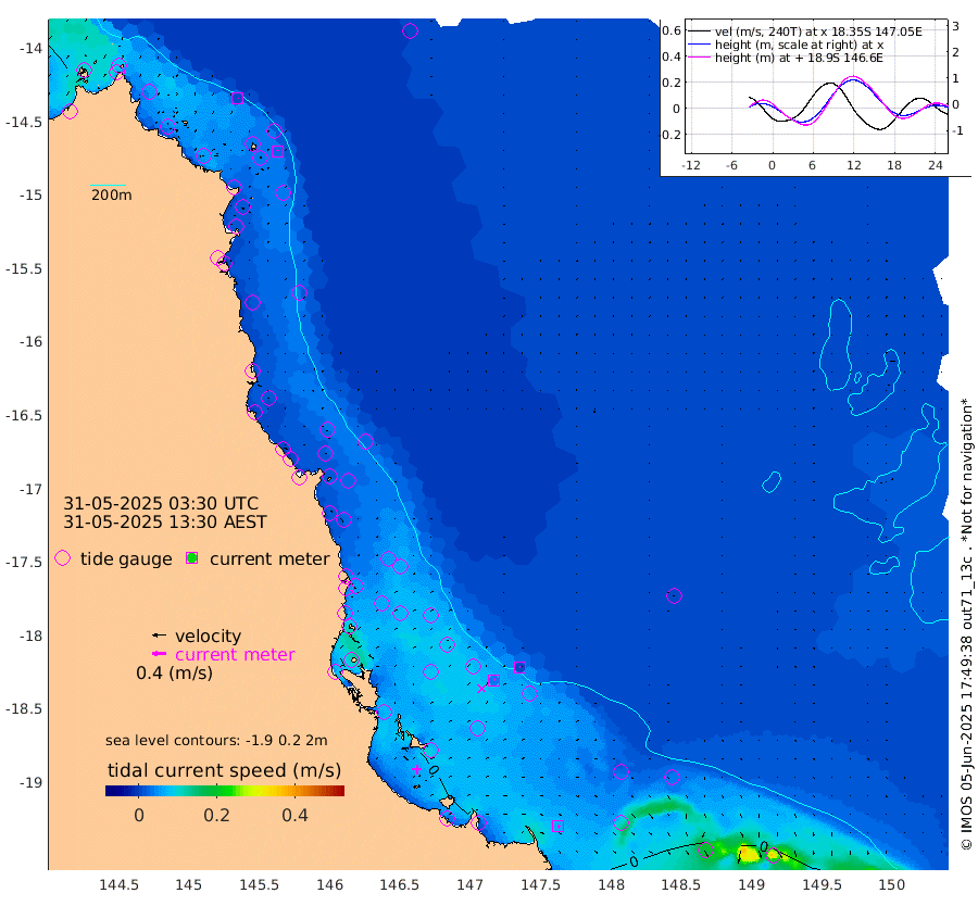 1cm/s 103T +11cm/s rms + 4cm/s -61T. GBRLSL 354m 3cm/s 3T +15cm/s rms + 2cm/s -84T. GBRLSH 32m 4cm/s 46T +15cm/s rms + 5cm/s -155T. GBRPPS 72m 1cm/s 126T +17cm/s rms + 13cm/s 115T. GBRMYR 223m 6cm/s 130T +18cm/s rms + 0cm/s -9T. NRSYON 29m -18cm Osprey Reef - West -17cm Stanley Island 23cm Pipon Islands -12cm Cape Melville -20cm Munro Reef -13cm Leggatt Island -9cm Normanby River -21cm Carter Reef -18cm Lizard Island (QLD) -23cm East Petherbridge Island -22cm North Direction Island -20cm Cape Flattery -24cm Ribbon Reef No.9 -28cm Low Wooded Island -21cm Cape Bedford -17cm Endeavour River North -18cm Cooktown -25cm Cruiser Passage -27cm East Hope Island -21cm Bailay Creek -19cm Low Islets -16cm Port Douglas -17cm Palm Cove -16cm Yorkeys Knob -18cm Michaelmas Cay -27cm Euston Reef -15cm Cairns -22cm Green Island -12cm Fitzroy Island -19cm Sudbury Cay -14cm High Island -21cm Russell Island -19cm Peart Reef -16cm Nathan Reef -15cm Mourilyan Harbour -16cm Cowley Beach -8cm North Barnard Island -18cm Eddy Reef -24cm Beaver Reef -18cm Unnamed Reef No. 1 -25cm Flinders Reef -14cm Clump Point -12cm Dunk Island -23cm Barnett Patches -12cm Goold Island -6cm Cardwell -14cm Britomart Reef -21cm Pith Reef -24cm Dip Reef -10cm Lucinda (Offshore) -13cm John Brewer Reef -14cm Albino Rock -22cm Shrimp Reef -18cm Jaguar Reef -8cm Townsville -10cm Cape Ferguson -10cm Stanley Reef -10cm Wallaby Reef -1cm Kennedy Reef