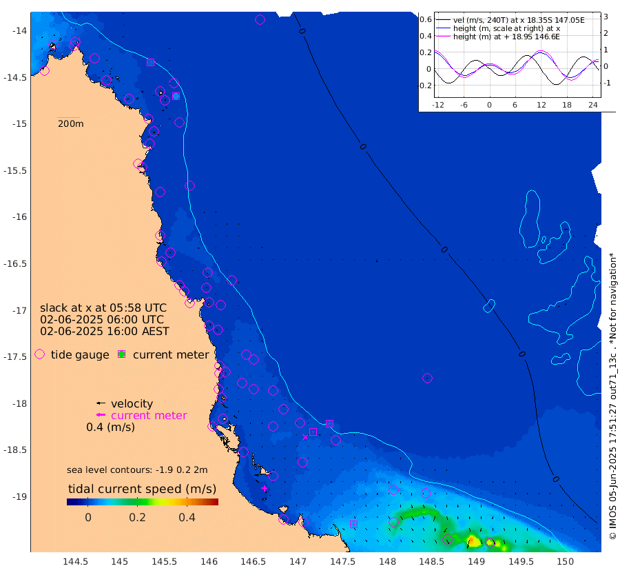 2cm/s 100T +11cm/s rms + 4cm/s -61T. GBRLSL 354m 5cm/s -163T +15cm/s rms + 2cm/s -84T. GBRLSH 32m 1cm/s 167T +15cm/s rms + 5cm/s -155T. GBRPPS 72m 2cm/s 156T +17cm/s rms + 13cm/s 115T. GBRMYR 223m 6cm/s 152T +18cm/s rms + 0cm/s -9T. NRSYON 29m -3cm Osprey Reef - West 0cm Stanley Island 25cm Pipon Islands 1cm Cape Melville -4cm Munro Reef 1cm Leggatt Island 5cm Normanby River -4cm Carter Reef -1cm Lizard Island (QLD) -5cm East Petherbridge Island -3cm North Direction Island -4cm Cape Flattery -6cm Ribbon Reef No.9 -13cm Low Wooded Island -3cm Cape Bedford -4cm Endeavour River North -1cm Cooktown -7cm Cruiser Passage -7cm East Hope Island -8cm Bailay Creek -3cm Low Islets 2cm Port Douglas 2cm Palm Cove 4cm Yorkeys Knob -2cm Michaelmas Cay -9cm Euston Reef 2cm Cairns -1cm Green Island 1cm Fitzroy Island -3cm Sudbury Cay 3cm High Island -1cm Russell Island 3cm Peart Reef 3cm Nathan Reef 2cm Mourilyan Harbour 4cm Cowley Beach 5cm North Barnard Island -5cm Eddy Reef -2cm Beaver Reef 0cm Unnamed Reef No. 1 -5cm Flinders Reef 4cm Clump Point 7cm Dunk Island -3cm Barnett Patches 9cm Goold Island 10cm Cardwell 8cm Britomart Reef -5cm Pith Reef -6cm Dip Reef 9cm Lucinda (Offshore) 7cm John Brewer Reef 4cm Albino Rock -3cm Shrimp Reef 1cm Jaguar Reef 13cm Townsville 11cm Cape Ferguson 7cm Stanley Reef 6cm Wallaby Reef 14cm Kennedy Reef