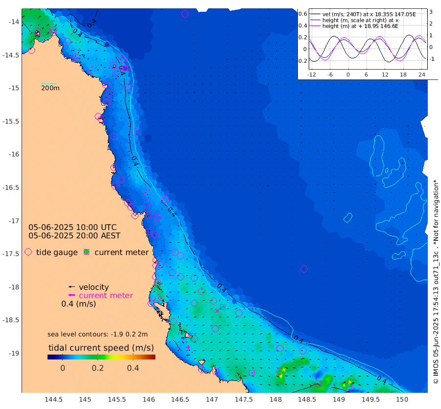 0cm/s 135T +11cm/s rms + 4cm/s -61T. GBRLSL 354m 2cm/s 73T +15cm/s rms + 2cm/s -84T. GBRLSH 32m 8cm/s 67T +15cm/s rms + 5cm/s -155T. GBRPPS 72m 3cm/s 79T +17cm/s rms + 13cm/s 115T. GBRMYR 223m 9cm/s 109T +18cm/s rms + 0cm/s -9T. NRSYON 29m 40cm Osprey Reef - West 49cm Stanley Island 34cm Pipon Islands 39cm Cape Melville 43cm Munro Reef 47cm Leggatt Island 56cm Normanby River 39cm Carter Reef 41cm Lizard Island (QLD) 43cm East Petherbridge Island 40cm North Direction Island 42cm Cape Flattery 42cm Ribbon Reef No.9 38cm Low Wooded Island 39cm Cape Bedford 34cm Endeavour River North 42cm Cooktown 39cm Cruiser Passage 31cm East Hope Island 35cm Bailay Creek 38cm Low Islets 44cm Port Douglas 44cm Palm Cove 46cm Yorkeys Knob 40cm Michaelmas Cay 23cm Euston Reef 45cm Cairns 40cm Green Island 31cm Fitzroy Island 39cm Sudbury Cay 40cm High Island 35cm Russell Island 47cm Peart Reef 43cm Nathan Reef 46cm Mourilyan Harbour 45cm Cowley Beach 48cm North Barnard Island 41cm Eddy Reef 57cm Beaver Reef 44cm Unnamed Reef No. 1 36cm Flinders Reef 48cm Clump Point 53cm Dunk Island 42cm Barnett Patches 55cm Goold Island 60cm Cardwell 45cm Britomart Reef 34cm Pith Reef 42cm Dip Reef 55cm Lucinda (Offshore) 52cm John Brewer Reef 53cm Albino Rock 39cm Shrimp Reef 36cm Jaguar Reef 58cm Townsville 55cm Cape Ferguson 58cm Stanley Reef 57cm Wallaby Reef 53cm Kennedy Reef