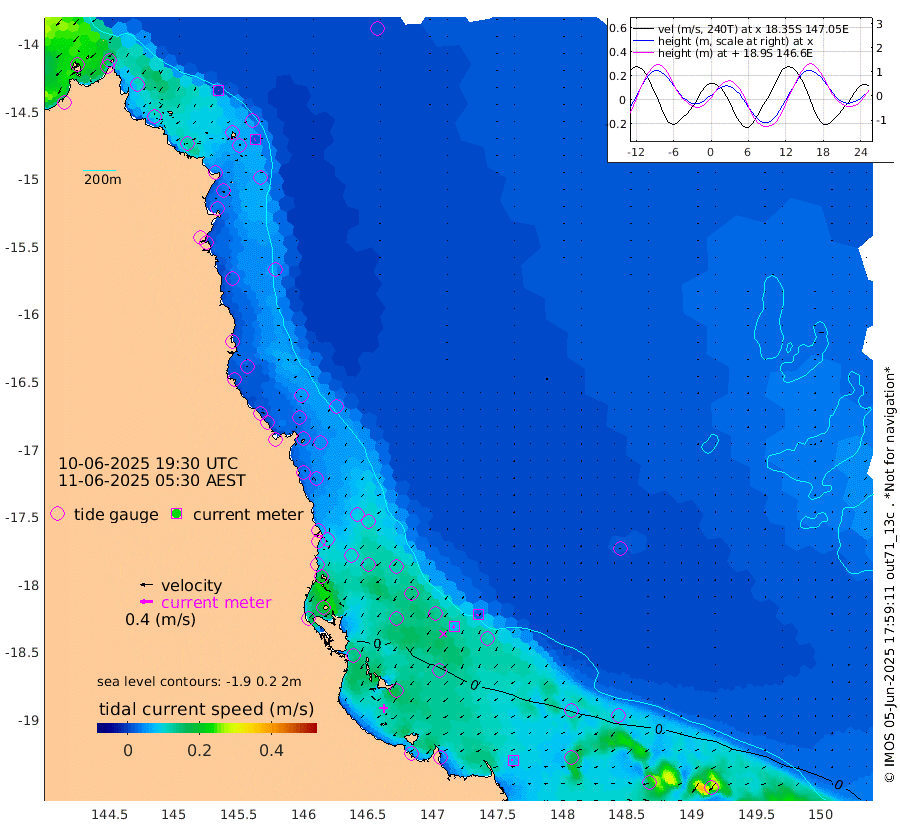 0cm/s 144T +11cm/s rms + 4cm/s -61T. GBRLSL 354m 2cm/s -116T +15cm/s rms + 2cm/s -84T. GBRLSH 32m 8cm/s -139T +15cm/s rms + 5cm/s -155T. GBRPPS 72m 3cm/s -144T +17cm/s rms + 13cm/s 115T. GBRMYR 223m 7cm/s -86T +18cm/s rms + 0cm/s -9T. NRSYON 29m 2cm Osprey Reef - West 1cm Stanley Island -8cm Pipon Islands 0cm Cape Melville 5cm Munro Reef 2cm Leggatt Island -2cm Normanby River 5cm Carter Reef 6cm Lizard Island (QLD) 1cm East Petherbridge Island 2cm North Direction Island 6cm Cape Flattery 7cm Ribbon Reef No.9 15cm Low Wooded Island 3cm Cape Bedford -2cm Endeavour River North 6cm Cooktown 9cm Cruiser Passage 14cm East Hope Island 3cm Bailay Creek 10cm Low Islets 5cm Port Douglas 8cm Palm Cove 9cm Yorkeys Knob 1cm Michaelmas Cay 2cm Euston Reef 5cm Cairns 8cm Green Island 12cm Fitzroy Island 5cm Sudbury Cay 10cm High Island 12cm Russell Island 11cm Peart Reef 10cm Nathan Reef 3cm Mourilyan Harbour 2cm Cowley Beach 0cm North Barnard Island 0cm Eddy Reef 8cm Beaver Reef 3cm Unnamed Reef No. 1 8cm Flinders Reef 3cm Clump Point 5cm Dunk Island 5cm Barnett Patches 3cm Goold Island -4cm Cardwell 10cm Britomart Reef 2cm Pith Reef 7cm Dip Reef 0cm Lucinda (Offshore) 9cm John Brewer Reef 0cm Albino Rock 3cm Shrimp Reef -2cm Jaguar Reef -1cm Townsville -1cm Cape Ferguson -10cm Stanley Reef -20cm Wallaby Reef -17cm Kennedy Reef