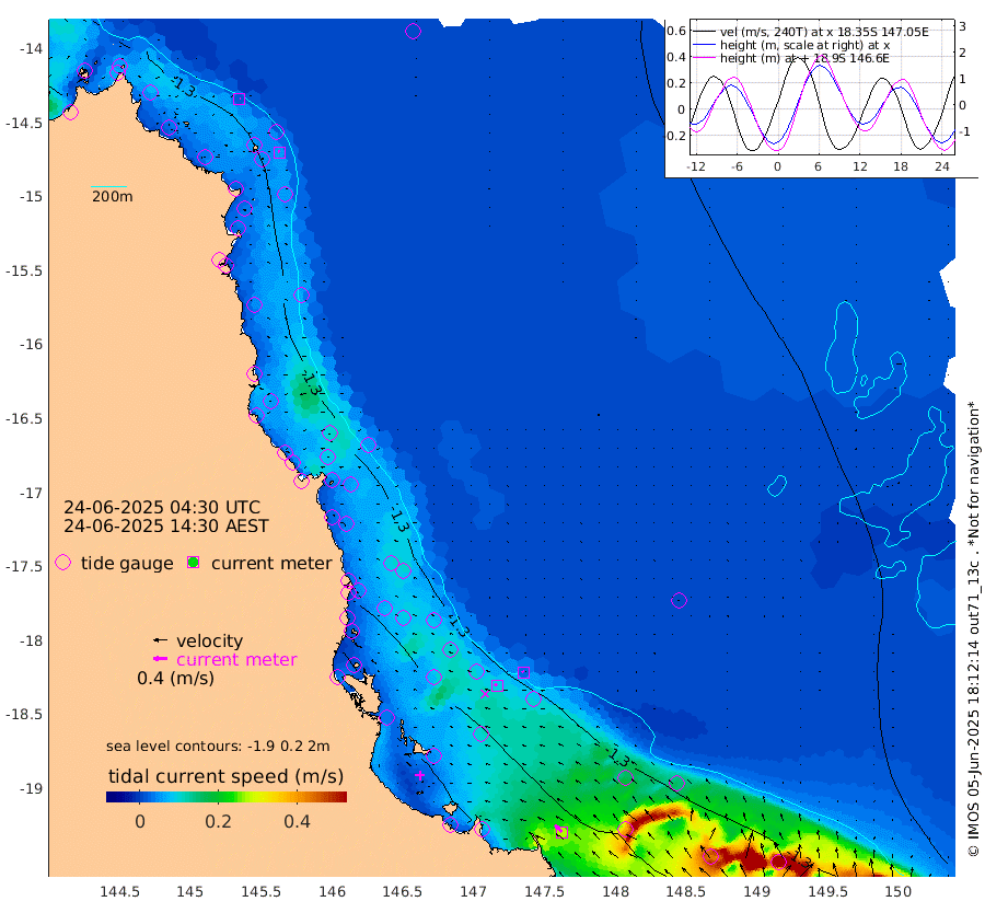 2cm/s 95T +11cm/s rms + 4cm/s -61T. GBRLSL 354m 6cm/s -26T +15cm/s rms + 2cm/s -84T. GBRLSH 32m 10cm/s -67T +15cm/s rms + 5cm/s -155T. GBRPPS 72m 3cm/s -28T +17cm/s rms + 13cm/s 115T. GBRMYR 223m 27cm/s -43T +18cm/s rms + 0cm/s -9T. NRSYON 29m -113cm Osprey Reef - West -135cm Stanley Island -106cm Pipon Islands -123cm Cape Melville -134cm Munro Reef -135cm Leggatt Island -148cm Normanby River -130cm Carter Reef -126cm Lizard Island (QLD) -131cm East Petherbridge Island -122cm North Direction Island -133cm Cape Flattery -125cm Ribbon Reef No.9 -141cm Low Wooded Island -117cm Cape Bedford -68cm Endeavour River North -128cm Cooktown -122cm Cruiser Passage -127cm East Hope Island -121cm Bailay Creek -122cm Low Islets -132cm Port Douglas -133cm Palm Cove -131cm Yorkeys Knob -121cm Michaelmas Cay -102cm Euston Reef -136cm Cairns -123cm Green Island -123cm Fitzroy Island -126cm Sudbury Cay -126cm High Island -112cm Russell Island -131cm Peart Reef -125cm Nathan Reef -135cm Mourilyan Harbour -134cm Cowley Beach -132cm North Barnard Island -135cm Eddy Reef -174cm Beaver Reef -130cm Unnamed Reef No. 1 -112cm Flinders Reef -142cm Clump Point -147cm Dunk Island -128cm Barnett Patches -152cm Goold Island -166cm Cardwell -141cm Britomart Reef -122cm Pith Reef -128cm Dip Reef -156cm Lucinda (Offshore) -144cm John Brewer Reef -155cm Albino Rock -131cm Shrimp Reef -116cm Jaguar Reef -163cm Townsville -154cm Cape Ferguson -145cm Stanley Reef -135cm Wallaby Reef -133cm Kennedy Reef