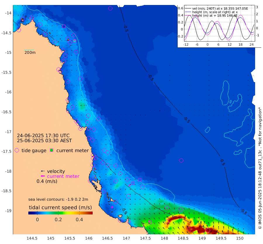 0cm/s -19T +11cm/s rms + 4cm/s -61T. GBRLSL 354m 11cm/s 6T +15cm/s rms + 2cm/s -84T. GBRLSH 32m 5cm/s -49T +15cm/s rms + 5cm/s -155T. GBRPPS 72m 3cm/s -2T +17cm/s rms + 13cm/s 115T. GBRMYR 223m 25cm/s -36T +18cm/s rms + 0cm/s -9T. NRSYON 29m -45cm Osprey Reef - West -58cm Stanley Island -65cm Pipon Islands -47cm Cape Melville -51cm Munro Reef -57cm Leggatt Island -77cm Normanby River -43cm Carter Reef -48cm Lizard Island (QLD) -49cm East Petherbridge Island -44cm North Direction Island -51cm Cape Flattery -44cm Ribbon Reef No.9 -41cm Low Wooded Island -41cm Cape Bedford -37cm Endeavour River North -50cm Cooktown -42cm Cruiser Passage -43cm East Hope Island -44cm Bailay Creek -46cm Low Islets -54cm Port Douglas -53cm Palm Cove -55cm Yorkeys Knob -49cm Michaelmas Cay -37cm Euston Reef -56cm Cairns -50cm Green Island -54cm Fitzroy Island -53cm Sudbury Cay -51cm High Island -46cm Russell Island -55cm Peart Reef -51cm Nathan Reef -56cm Mourilyan Harbour -60cm Cowley Beach -66cm North Barnard Island -54cm Eddy Reef -74cm Beaver Reef -54cm Unnamed Reef No. 1 -39cm Flinders Reef -63cm Clump Point -67cm Dunk Island -53cm Barnett Patches -69cm Goold Island -80cm Cardwell -59cm Britomart Reef -50cm Pith Reef -47cm Dip Reef -74cm Lucinda (Offshore) -61cm John Brewer Reef -75cm Albino Rock -51cm Shrimp Reef -52cm Jaguar Reef -81cm Townsville -74cm Cape Ferguson -64cm Stanley Reef -61cm Wallaby Reef -61cm Kennedy Reef