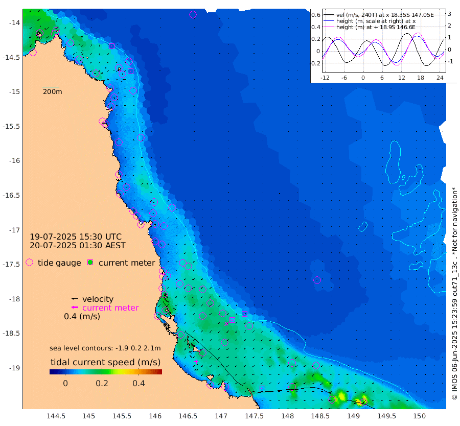2cm/s -78T +11cm/s rms + 4cm/s -61T. GBRLSL 354m 2cm/s -99T +15cm/s rms + 2cm/s -84T. GBRLSH 32m 9cm/s -127T +15cm/s rms + 5cm/s -155T. GBRPPS 72m 3cm/s -122T +17cm/s rms + 13cm/s 115T. GBRMYR 223m 8cm/s -90T +18cm/s rms + 0cm/s -9T. NRSYON 29m -10cm Osprey Reef - West -29cm Stanley Island -26cm Pipon Islands -20cm Cape Melville -24cm Munro Reef -22cm Leggatt Island -32cm Normanby River -20cm Carter Reef -19cm Lizard Island (QLD) -23cm East Petherbridge Island -20cm North Direction Island -19cm Cape Flattery -11cm Ribbon Reef No.9 -1cm Low Wooded Island -18cm Cape Bedford -9cm Endeavour River North -18cm Cooktown -8cm Cruiser Passage -18cm East Hope Island -20cm Bailay Creek -17cm Low Islets -19cm Port Douglas -15cm Palm Cove -17cm Yorkeys Knob -18cm Michaelmas Cay -16cm Euston Reef -20cm Cairns -16cm Green Island -19cm Fitzroy Island -19cm Sudbury Cay -16cm High Island -17cm Russell Island -20cm Peart Reef -17cm Nathan Reef -20cm Mourilyan Harbour -24cm Cowley Beach -32cm North Barnard Island -13cm Eddy Reef -27cm Beaver Reef -16cm Unnamed Reef No. 1 -7cm Flinders Reef -23cm Clump Point -24cm Dunk Island -20cm Barnett Patches -25cm Goold Island -35cm Cardwell -18cm Britomart Reef -17cm Pith Reef -5cm Dip Reef -29cm Lucinda (Offshore) -28cm John Brewer Reef -28cm Albino Rock -21cm Shrimp Reef -18cm Jaguar Reef -32cm Townsville -29cm Cape Ferguson -30cm Stanley Reef -34cm Wallaby Reef -25cm Kennedy Reef