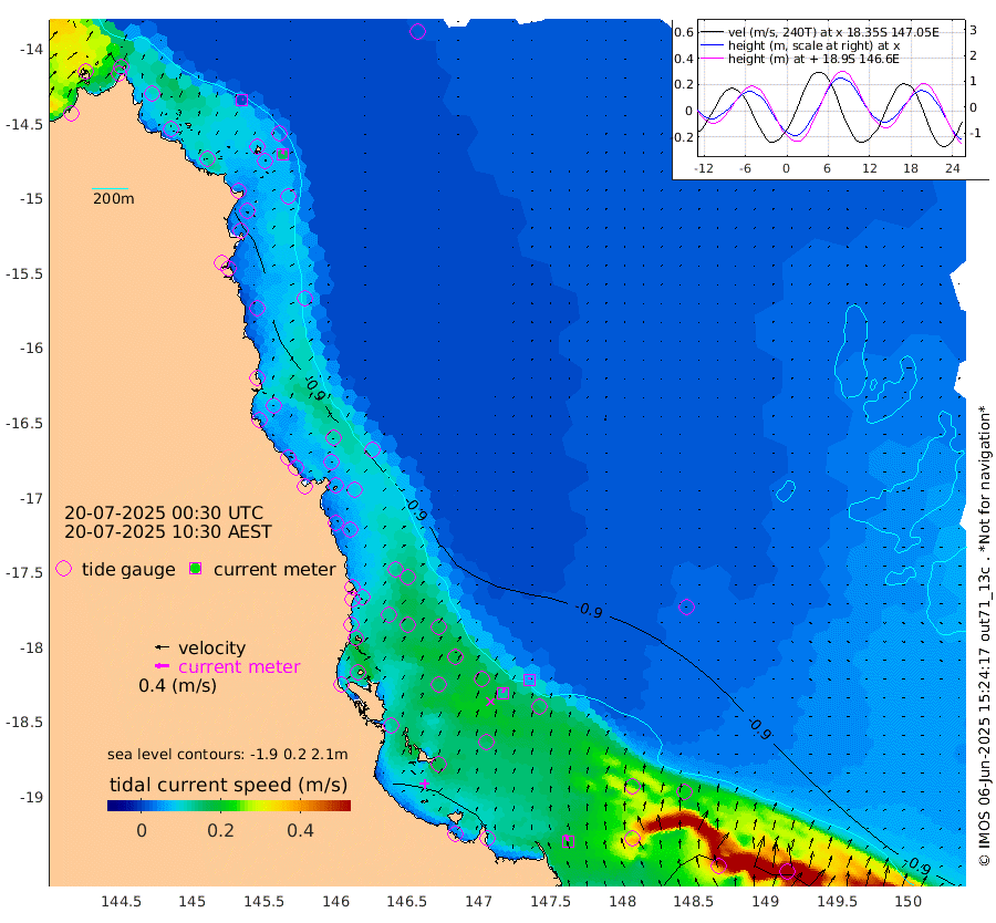 1cm/s 119T +11cm/s rms + 4cm/s -61T. GBRLSL 354m 16cm/s 8T +15cm/s rms + 2cm/s -84T. GBRLSH 32m 13cm/s 13T +15cm/s rms + 5cm/s -155T. GBRPPS 72m 7cm/s 24T +17cm/s rms + 13cm/s 115T. GBRMYR 223m 20cm/s -18T +18cm/s rms + 0cm/s -9T. NRSYON 29m -73cm Osprey Reef - West -75cm Stanley Island -62cm Pipon Islands -73cm Cape Melville -78cm Munro Reef -78cm Leggatt Island -77cm Normanby River -82cm Carter Reef -81cm Lizard Island (QLD) -74cm East Petherbridge Island -74cm North Direction Island -83cm Cape Flattery -81cm Ribbon Reef No.9 -93cm Low Wooded Island -72cm Cape Bedford -40cm Endeavour River North -82cm Cooktown -82cm Cruiser Passage -88cm East Hope Island -69cm Bailay Creek -77cm Low Islets -85cm Port Douglas -90cm Palm Cove -87cm Yorkeys Knob -75cm Michaelmas Cay -69cm Euston Reef -87cm Cairns -84cm Green Island -84cm Fitzroy Island -80cm Sudbury Cay -86cm High Island -76cm Russell Island -86cm Peart Reef -84cm Nathan Reef -86cm Mourilyan Harbour -86cm Cowley Beach -76cm North Barnard Island -84cm Eddy Reef -109cm Beaver Reef -87cm Unnamed Reef No. 1 -83cm Flinders Reef -91cm Clump Point -96cm Dunk Island -84cm Barnett Patches -99cm Goold Island -94cm Cardwell -100cm Britomart Reef -79cm Pith Reef -89cm Dip Reef -96cm Lucinda (Offshore) -92cm John Brewer Reef -96cm Albino Rock -90cm Shrimp Reef -84cm Jaguar Reef -102cm Townsville -99cm Cape Ferguson -88cm Stanley Reef -77cm Wallaby Reef -88cm Kennedy Reef