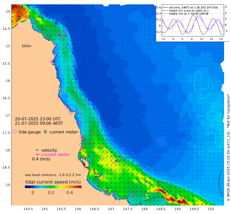 1cm/s 127T +11cm/s rms + 4cm/s -61T. GBRLSL 354m 18cm/s 18T +15cm/s rms + 2cm/s -84T. GBRLSH 32m 17cm/s 42T +15cm/s rms + 5cm/s -155T. GBRPPS 72m 7cm/s 50T +17cm/s rms + 13cm/s 115T. GBRMYR 223m 11cm/s 54T +18cm/s rms + 0cm/s -9T. NRSYON 29m -20cm Osprey Reef - West 2cm Stanley Island 8cm Pipon Islands -6cm Cape Melville -5cm Munro Reef -5cm Leggatt Island 13cm Normanby River -14cm Carter Reef -14cm Lizard Island (QLD) -1cm East Petherbridge Island -8cm North Direction Island -11cm Cape Flattery -19cm Ribbon Reef No.9 -21cm Low Wooded Island -9cm Cape Bedford -7cm Endeavour River North -14cm Cooktown -22cm Cruiser Passage -22cm East Hope Island 1cm Bailay Creek -12cm Low Islets -14cm Port Douglas -20cm Palm Cove -19cm Yorkeys Knob -12cm Michaelmas Cay -22cm Euston Reef -14cm Cairns -22cm Green Island -19cm Fitzroy Island -16cm Sudbury Cay -20cm High Island -17cm Russell Island -15cm Peart Reef -19cm Nathan Reef -14cm Mourilyan Harbour -12cm Cowley Beach 6cm North Barnard Island -18cm Eddy Reef -14cm Beaver Reef -21cm Unnamed Reef No. 1 -33cm Flinders Reef -13cm Clump Point -11cm Dunk Island -15cm Barnett Patches -13cm Goold Island 4cm Cardwell -24cm Britomart Reef -19cm Pith Reef -31cm Dip Reef -7cm Lucinda (Offshore) -7cm John Brewer Reef -9cm Albino Rock -19cm Shrimp Reef -25cm Jaguar Reef -7cm Townsville -11cm Cape Ferguson 0cm Stanley Reef 3cm Wallaby Reef -15cm Kennedy Reef