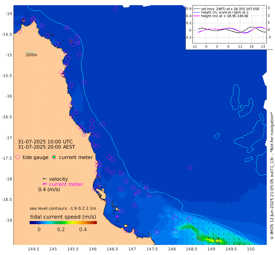 1cm/s -88T +11cm/s rms + 4cm/s -61T. GBRLSL 354m 1cm/s -150T +15cm/s rms + 2cm/s -84T. GBRLSH 32m 1cm/s 114T +15cm/s rms + 5cm/s -155T. GBRPPS 72m 1cm/s 69T +17cm/s rms + 13cm/s 115T. GBRMYR 223m 5cm/s -29T +18cm/s rms + 0cm/s -9T. NRSYON 29m 14cm Osprey Reef - West 21cm Stanley Island -5cm Pipon Islands 15cm Cape Melville 15cm Munro Reef 17cm Leggatt Island 19cm Normanby River 18cm Carter Reef 17cm Lizard Island (QLD) 16cm East Petherbridge Island 15cm North Direction Island 18cm Cape Flattery 16cm Ribbon Reef No.9 14cm Low Wooded Island 15cm Cape Bedford 10cm Endeavour River North 17cm Cooktown 16cm Cruiser Passage 17cm East Hope Island 7cm Bailay Creek 17cm Low Islets 16cm Port Douglas 16cm Palm Cove 20cm Yorkeys Knob 18cm Michaelmas Cay 10cm Euston Reef 15cm Cairns 21cm Green Island 17cm Fitzroy Island 18cm Sudbury Cay 18cm High Island 24cm Russell Island 25cm Peart Reef 20cm Nathan Reef 15cm Mourilyan Harbour 15cm Cowley Beach 19cm North Barnard Island 8cm Eddy Reef 20cm Beaver Reef 17cm Unnamed Reef No. 1 20cm Flinders Reef 16cm Clump Point 20cm Dunk Island 16cm Barnett Patches 18cm Goold Island 15cm Cardwell 18cm Britomart Reef 12cm Pith Reef 18cm Dip Reef 16cm Lucinda (Offshore) 28cm John Brewer Reef 13cm Albino Rock 14cm Shrimp Reef 9cm Jaguar Reef 16cm Townsville 16cm Cape Ferguson 15cm Stanley Reef 8cm Wallaby Reef 3cm Kennedy Reef