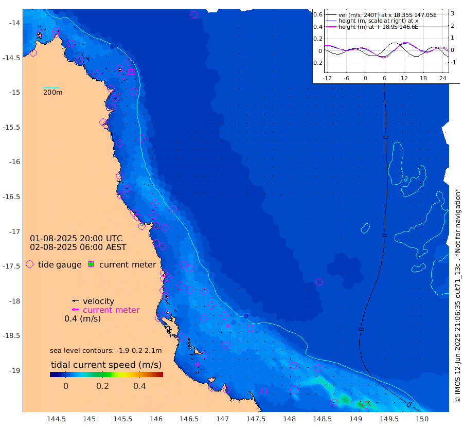0cm/s 129T +11cm/s rms + 4cm/s -61T. GBRLSL 354m 3cm/s 28T +15cm/s rms + 2cm/s -84T. GBRLSH 32m 3cm/s 49T +15cm/s rms + 5cm/s -155T. GBRPPS 72m 1cm/s 102T +17cm/s rms + 13cm/s 115T. GBRMYR 223m 3cm/s 4T +18cm/s rms + 0cm/s -9T. NRSYON 29m -4cm Osprey Reef - West 3cm Stanley Island 15cm Pipon Islands 2cm Cape Melville 1cm Munro Reef 0cm Leggatt Island 6cm Normanby River -1cm Carter Reef 0cm Lizard Island (QLD) 5cm East Petherbridge Island 5cm North Direction Island -4cm Cape Flattery -2cm Ribbon Reef No.9 2cm Low Wooded Island 3cm Cape Bedford -9cm Endeavour River North -1cm Cooktown -3cm Cruiser Passage -6cm East Hope Island 7cm Bailay Creek -1cm Low Islets 0cm Port Douglas 0cm Palm Cove 1cm Yorkeys Knob -6cm Michaelmas Cay -7cm Euston Reef 0cm Cairns -3cm Green Island -9cm Fitzroy Island -5cm Sudbury Cay -3cm High Island -3cm Russell Island 1cm Peart Reef 0cm Nathan Reef -1cm Mourilyan Harbour 2cm Cowley Beach -5cm North Barnard Island -5cm Eddy Reef -3cm Beaver Reef -2cm Unnamed Reef No. 1 -9cm Flinders Reef 0cm Clump Point -1cm Dunk Island 2cm Barnett Patches 1cm Goold Island 3cm Cardwell 3cm Britomart Reef -6cm Pith Reef -7cm Dip Reef 2cm Lucinda (Offshore) -1cm John Brewer Reef 3cm Albino Rock -4cm Shrimp Reef -6cm Jaguar Reef 4cm Townsville 3cm Cape Ferguson 6cm Stanley Reef 4cm Wallaby Reef -1cm Kennedy Reef