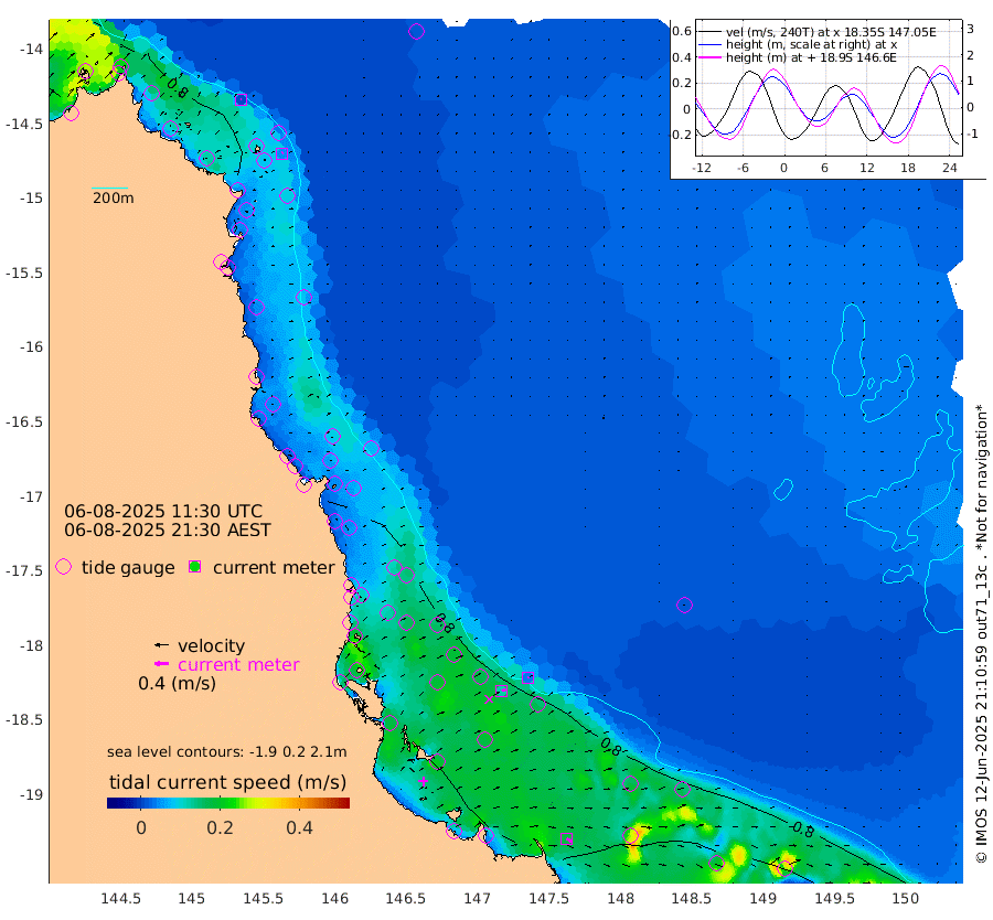 1cm/s -71T +11cm/s rms + 4cm/s -61T. GBRLSL 354m 5cm/s 47T +15cm/s rms + 2cm/s -84T. GBRLSH 32m 12cm/s 73T +15cm/s rms + 5cm/s -155T. GBRPPS 72m 4cm/s 66T +17cm/s rms + 13cm/s 115T. GBRMYR 223m 18cm/s 116T +18cm/s rms + 0cm/s -9T. NRSYON 29m 86cm Osprey Reef - West 104cm Stanley Island 63cm Pipon Islands 92cm Cape Melville 96cm Munro Reef 98cm Leggatt Island 110cm Normanby River 94cm Carter Reef 89cm Lizard Island (QLD) 107cm East Petherbridge Island 98cm North Direction Island 96cm Cape Flattery 90cm Ribbon Reef No.9 98cm Low Wooded Island 94cm Cape Bedford 59cm Endeavour River North 92cm Cooktown 87cm Cruiser Passage 87cm East Hope Island 95cm Bailay Creek 85cm Low Islets 93cm Port Douglas 91cm Palm Cove 87cm Yorkeys Knob 93cm Michaelmas Cay 87cm Euston Reef 96cm Cairns 86cm Green Island 73cm Fitzroy Island 90cm Sudbury Cay 84cm High Island 78cm Russell Island 87cm Peart Reef 81cm Nathan Reef 96cm Mourilyan Harbour 98cm Cowley Beach 95cm North Barnard Island 102cm Eddy Reef 124cm Beaver Reef 93cm Unnamed Reef No. 1 78cm Flinders Reef 100cm Clump Point 100cm Dunk Island 94cm Barnett Patches 105cm Goold Island 120cm Cardwell 92cm Britomart Reef 93cm Pith Reef 91cm Dip Reef 110cm Lucinda (Offshore) 95cm John Brewer Reef 109cm Albino Rock 96cm Shrimp Reef 88cm Jaguar Reef 114cm Townsville 109cm Cape Ferguson 115cm Stanley Reef 113cm Wallaby Reef 104cm Kennedy Reef