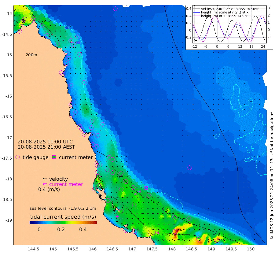 1cm/s -75T +11cm/s rms + 4cm/s -61T. GBRLSL 354m 4cm/s 101T +15cm/s rms + 2cm/s -84T. GBRLSH 32m 14cm/s 81T +15cm/s rms + 5cm/s -155T. GBRPPS 72m 5cm/s 80T +17cm/s rms + 13cm/s 115T. GBRMYR 223m 26cm/s 123T +18cm/s rms + 0cm/s -9T. NRSYON 29m 114cm Osprey Reef - West 143cm Stanley Island 100cm Pipon Islands 125cm Cape Melville 135cm Munro Reef 138cm Leggatt Island 157cm Normanby River 130cm Carter Reef 127cm Lizard Island (QLD) 135cm East Petherbridge Island 125cm North Direction Island 132cm Cape Flattery 123cm Ribbon Reef No.9 129cm Low Wooded Island 119cm Cape Bedford 81cm Endeavour River North 128cm Cooktown 118cm Cruiser Passage 123cm East Hope Island 123cm Bailay Creek 122cm Low Islets 131cm Port Douglas 129cm Palm Cove 131cm Yorkeys Knob 126cm Michaelmas Cay 101cm Euston Reef 134cm Cairns 123cm Green Island 120cm Fitzroy Island 127cm Sudbury Cay 125cm High Island 114cm Russell Island 132cm Peart Reef 124cm Nathan Reef 134cm Mourilyan Harbour 135cm Cowley Beach 146cm North Barnard Island 131cm Eddy Reef 177cm Beaver Reef 129cm Unnamed Reef No. 1 109cm Flinders Reef 141cm Clump Point 147cm Dunk Island 132cm Barnett Patches 151cm Goold Island 169cm Cardwell 135cm Britomart Reef 125cm Pith Reef 125cm Dip Reef 156cm Lucinda (Offshore) 147cm John Brewer Reef 150cm Albino Rock 131cm Shrimp Reef 116cm Jaguar Reef 162cm Townsville 153cm Cape Ferguson 154cm Stanley Reef 146cm Wallaby Reef 132cm Kennedy Reef