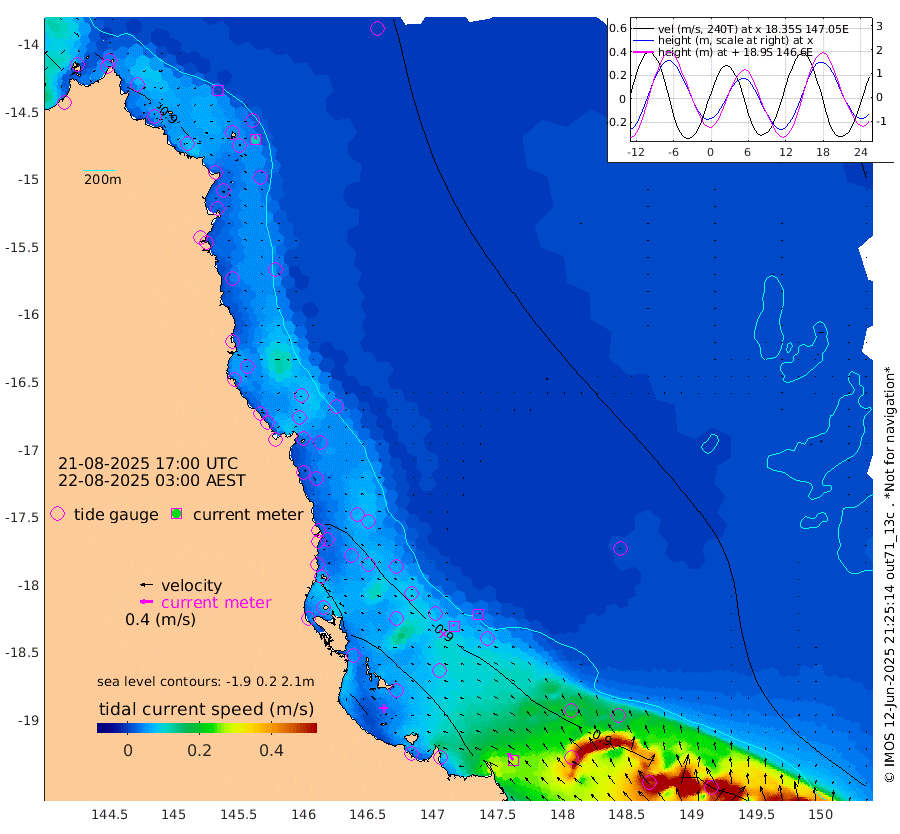 1cm/s 54T +11cm/s rms + 4cm/s -61T. GBRLSL 354m 11cm/s 7T +15cm/s rms + 2cm/s -84T. GBRLSH 32m 7cm/s -51T +15cm/s rms + 5cm/s -155T. GBRPPS 72m 3cm/s -16T +17cm/s rms + 13cm/s 115T. GBRMYR 223m 27cm/s -37T +18cm/s rms + 0cm/s -9T. NRSYON 29m -70cm Osprey Reef - West -89cm Stanley Island -80cm Pipon Islands -76cm Cape Melville -78cm Munro Reef -85cm Leggatt Island -110cm Normanby River -72cm Carter Reef -74cm Lizard Island (QLD) -82cm East Petherbridge Island -74cm North Direction Island -82cm Cape Flattery -74cm Ribbon Reef No.9 -78cm Low Wooded Island -71cm Cape Bedford -50cm Endeavour River North -78cm Cooktown -71cm Cruiser Passage -68cm East Hope Island -71cm Bailay Creek -71cm Low Islets -82cm Port Douglas -81cm Palm Cove -81cm Yorkeys Knob -79cm Michaelmas Cay -65cm Euston Reef -85cm Cairns -77cm Green Island -76cm Fitzroy Island -80cm Sudbury Cay -77cm High Island -75cm Russell Island -83cm Peart Reef -75cm Nathan Reef -84cm Mourilyan Harbour -89cm Cowley Beach -91cm North Barnard Island -83cm Eddy Reef -110cm Beaver Reef -81cm Unnamed Reef No. 1 -66cm Flinders Reef -92cm Clump Point -98cm Dunk Island -80cm Barnett Patches -101cm Goold Island -114cm Cardwell -90cm Britomart Reef -77cm Pith Reef -76cm Dip Reef -106cm Lucinda (Offshore) -91cm John Brewer Reef -106cm Albino Rock -78cm Shrimp Reef -75cm Jaguar Reef -114cm Townsville -106cm Cape Ferguson -93cm Stanley Reef -87cm Wallaby Reef -84cm Kennedy Reef
