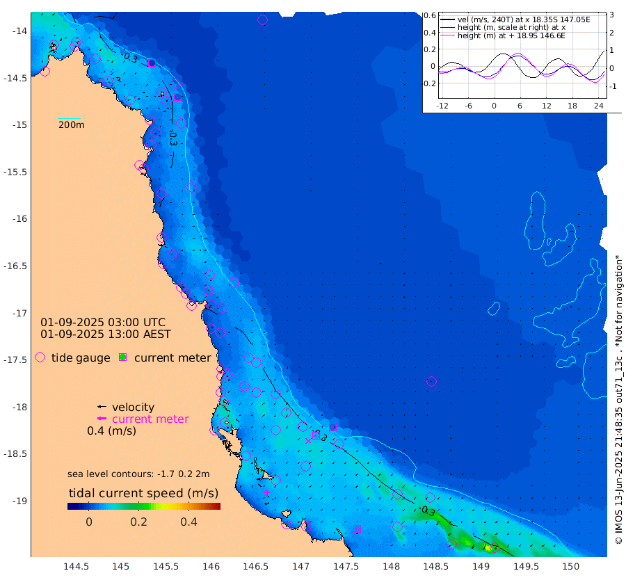 0cm/s 50T +11cm/s rms + 4cm/s -61T. GBRLSL 354m 2cm/s -152T +15cm/s rms + 2cm/s -84T. GBRLSH 32m 7cm/s -113T +15cm/s rms + 5cm/s -155T. GBRPPS 72m 3cm/s -105T +17cm/s rms + 13cm/s 115T. GBRMYR 223m 5cm/s -114T +18cm/s rms + 0cm/s -9T. NRSYON 29m -33cm Osprey Reef - West -44cm Stanley Island -28cm Pipon Islands -35cm Cape Melville -35cm Munro Reef -39cm Leggatt Island -48cm Normanby River -29cm Carter Reef -35cm Lizard Island (QLD) -47cm East Petherbridge Island -43cm North Direction Island -33cm Cape Flattery -32cm Ribbon Reef No.9 -39cm Low Wooded Island -41cm Cape Bedford -27cm Endeavour River North -36cm Cooktown -31cm Cruiser Passage -27cm East Hope Island -38cm Bailay Creek -35cm Low Islets -36cm Port Douglas -36cm Palm Cove -36cm Yorkeys Knob -33cm Michaelmas Cay -27cm Euston Reef -37cm Cairns -32cm Green Island -16cm Fitzroy Island -30cm Sudbury Cay -34cm High Island -34cm Russell Island -38cm Peart Reef -33cm Nathan Reef -36cm Mourilyan Harbour -39cm Cowley Beach -33cm North Barnard Island -34cm Eddy Reef -45cm Beaver Reef -35cm Unnamed Reef No. 1 -22cm Flinders Reef -38cm Clump Point -37cm Dunk Island -37cm Barnett Patches -43cm Goold Island -47cm Cardwell -36cm Britomart Reef -30cm Pith Reef -30cm Dip Reef -44cm Lucinda (Offshore) -37cm John Brewer Reef -41cm Albino Rock -30cm Shrimp Reef -24cm Jaguar Reef -46cm Townsville -43cm Cape Ferguson -45cm Stanley Reef -37cm Wallaby Reef -37cm Kennedy Reef