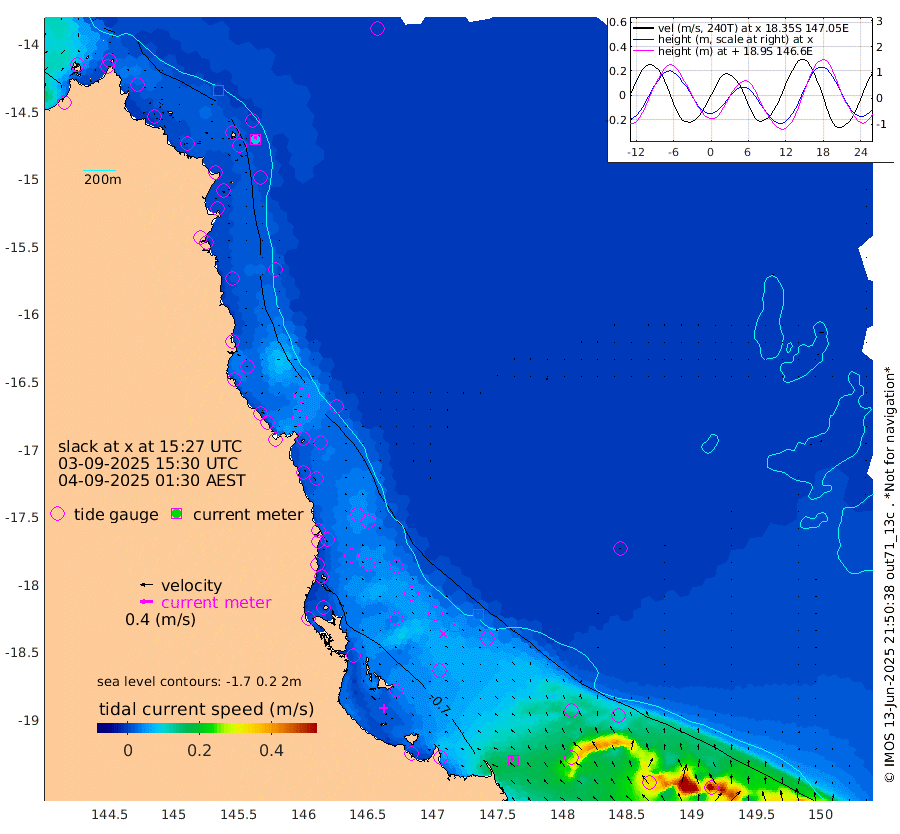 0cm/s 12T +11cm/s rms + 4cm/s -61T. GBRLSL 354m 9cm/s 8T +15cm/s rms + 2cm/s -84T. GBRLSH 32m 5cm/s -18T +15cm/s rms + 5cm/s -155T. GBRPPS 72m 3cm/s -5T +17cm/s rms + 13cm/s 115T. GBRMYR 223m 17cm/s -32T +18cm/s rms + 0cm/s -9T. NRSYON 29m -43cm Osprey Reef - West -60cm Stanley Island -48cm Pipon Islands -53cm Cape Melville -51cm Munro Reef -52cm Leggatt Island -68cm Normanby River -45cm Carter Reef -49cm Lizard Island (QLD) -60cm East Petherbridge Island -55cm North Direction Island -56cm Cape Flattery -45cm Ribbon Reef No.9 -43cm Low Wooded Island -52cm Cape Bedford -29cm Endeavour River North -51cm Cooktown -43cm Cruiser Passage -50cm East Hope Island -45cm Bailay Creek -47cm Low Islets -53cm Port Douglas -51cm Palm Cove -48cm Yorkeys Knob -52cm Michaelmas Cay -58cm Euston Reef -55cm Cairns -50cm Green Island -50cm Fitzroy Island -53cm Sudbury Cay -48cm High Island -52cm Russell Island -52cm Peart Reef -46cm Nathan Reef -54cm Mourilyan Harbour -61cm Cowley Beach -55cm North Barnard Island -54cm Eddy Reef -69cm Beaver Reef -52cm Unnamed Reef No. 1 -44cm Flinders Reef -60cm Clump Point -58cm Dunk Island -53cm Barnett Patches -64cm Goold Island -74cm Cardwell -57cm Britomart Reef -56cm Pith Reef -46cm Dip Reef -69cm Lucinda (Offshore) -56cm John Brewer Reef -72cm Albino Rock -55cm Shrimp Reef -54cm Jaguar Reef -75cm Townsville -71cm Cape Ferguson -58cm Stanley Reef -60cm Wallaby Reef -62cm Kennedy Reef