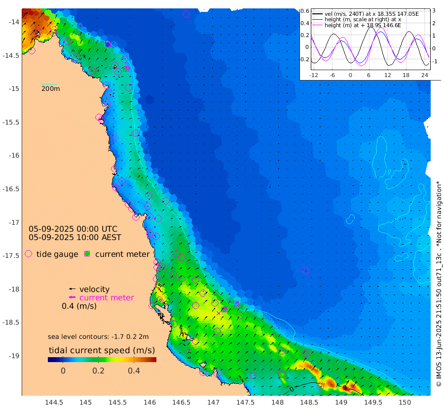 1cm/s 118T +11cm/s rms + 4cm/s -61T. GBRLSL 354m 16cm/s 16T +15cm/s rms + 2cm/s -84T. GBRLSH 32m 17cm/s 41T +15cm/s rms + 5cm/s -155T. GBRPPS 72m 7cm/s 47T +17cm/s rms + 13cm/s 115T. GBRMYR 223m 11cm/s 66T +18cm/s rms + 0cm/s -9T. NRSYON 29m -12cm Osprey Reef - West -3cm Stanley Island 1cm Pipon Islands -8cm Cape Melville -9cm Munro Reef -6cm Leggatt Island 8cm Normanby River -23cm Carter Reef -17cm Lizard Island (QLD) -2cm East Petherbridge Island -9cm North Direction Island -13cm Cape Flattery -16cm Ribbon Reef No.9 -23cm Low Wooded Island -8cm Cape Bedford 6cm Endeavour River North -16cm Cooktown -20cm Cruiser Passage -32cm East Hope Island -7cm Bailay Creek -16cm Low Islets -15cm Port Douglas -21cm Palm Cove -22cm Yorkeys Knob -11cm Michaelmas Cay -20cm Euston Reef -14cm Cairns -25cm Green Island -31cm Fitzroy Island -19cm Sudbury Cay -24cm High Island -23cm Russell Island -21cm Peart Reef -23cm Nathan Reef -14cm Mourilyan Harbour -13cm Cowley Beach -2cm North Barnard Island -9cm Eddy Reef -18cm Beaver Reef -19cm Unnamed Reef No. 1 -29cm Flinders Reef -14cm Clump Point -15cm Dunk Island -19cm Barnett Patches -14cm Goold Island 3cm Cardwell -29cm Britomart Reef -18cm Pith Reef -25cm Dip Reef -8cm Lucinda (Offshore) -18cm John Brewer Reef -8cm Albino Rock -23cm Shrimp Reef -21cm Jaguar Reef -8cm Townsville -12cm Cape Ferguson -1cm Stanley Reef 10cm Wallaby Reef 3cm Kennedy Reef