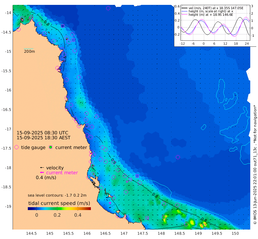 0cm/s 8T +11cm/s rms + 4cm/s -61T. GBRLSL 354m 3cm/s 101T +15cm/s rms + 2cm/s -84T. GBRLSH 32m 9cm/s 90T +15cm/s rms + 5cm/s -155T. GBRPPS 72m 4cm/s 84T +17cm/s rms + 13cm/s 115T. GBRMYR 223m 12cm/s 115T +18cm/s rms + 0cm/s -9T. NRSYON 29m 77cm Osprey Reef - West 103cm Stanley Island 66cm Pipon Islands 91cm Cape Melville 96cm Munro Reef 96cm Leggatt Island 105cm Normanby River 97cm Carter Reef 93cm Lizard Island (QLD) 98cm East Petherbridge Island 92cm North Direction Island 94cm Cape Flattery 84cm Ribbon Reef No.9 89cm Low Wooded Island 88cm Cape Bedford 49cm Endeavour River North 92cm Cooktown 82cm Cruiser Passage 95cm East Hope Island 88cm Bailay Creek 89cm Low Islets 93cm Port Douglas 92cm Palm Cove 93cm Yorkeys Knob 90cm Michaelmas Cay 78cm Euston Reef 95cm Cairns 89cm Green Island 88cm Fitzroy Island 91cm Sudbury Cay 92cm High Island 87cm Russell Island 96cm Peart Reef 89cm Nathan Reef 95cm Mourilyan Harbour 97cm Cowley Beach 103cm North Barnard Island 86cm Eddy Reef 124cm Beaver Reef 91cm Unnamed Reef No. 1 78cm Flinders Reef 99cm Clump Point 104cm Dunk Island 95cm Barnett Patches 107cm Goold Island 116cm Cardwell 99cm Britomart Reef 89cm Pith Reef 84cm Dip Reef 109cm Lucinda (Offshore) 110cm John Brewer Reef 103cm Albino Rock 98cm Shrimp Reef 84cm Jaguar Reef 113cm Townsville 108cm Cape Ferguson 110cm Stanley Reef 103cm Wallaby Reef 91cm Kennedy Reef