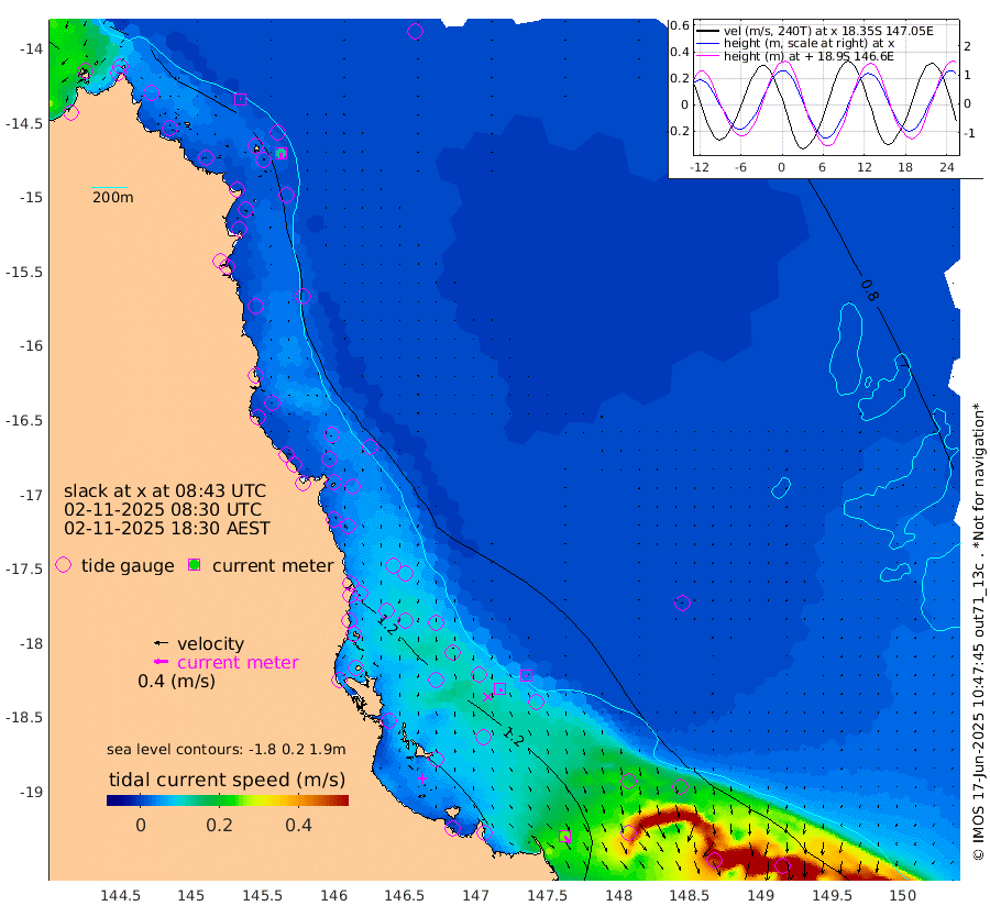 1cm/s -82T +11cm/s rms + 4cm/s -61T. GBRLSL 354m 13cm/s -176T +15cm/s rms + 2cm/s -84T. GBRLSH 32m 8cm/s 155T +15cm/s rms + 5cm/s -155T. GBRPPS 72m 4cm/s 174T +17cm/s rms + 13cm/s 115T. GBRMYR 223m 25cm/s 145T +18cm/s rms + 0cm/s -9T. NRSYON 29m 84cm Osprey Reef - West 107cm Stanley Island 86cm Pipon Islands 97cm Cape Melville 104cm Munro Reef 103cm Leggatt Island 122cm Normanby River 97cm Carter Reef 99cm Lizard Island (QLD) 104cm East Petherbridge Island 97cm North Direction Island 106cm Cape Flattery 95cm Ribbon Reef No.9 105cm Low Wooded Island 91cm Cape Bedford 55cm Endeavour River North 101cm Cooktown 93cm Cruiser Passage 106cm East Hope Island 94cm Bailay Creek 99cm Low Islets 104cm Port Douglas 105cm Palm Cove 103cm Yorkeys Knob 94cm Michaelmas Cay 86cm Euston Reef 108cm Cairns 98cm Green Island 107cm Fitzroy Island 102cm Sudbury Cay 100cm High Island 95cm Russell Island 106cm Peart Reef 99cm Nathan Reef 105cm Mourilyan Harbour 110cm Cowley Beach 109cm North Barnard Island 104cm Eddy Reef 141cm Beaver Reef 101cm Unnamed Reef No. 1 89cm Flinders Reef 112cm Clump Point 116cm Dunk Island 105cm Barnett Patches 120cm Goold Island 131cm Cardwell 114cm Britomart Reef 101cm Pith Reef 97cm Dip Reef 124cm Lucinda (Offshore) 116cm John Brewer Reef 125cm Albino Rock 106cm Shrimp Reef 94cm Jaguar Reef 132cm Townsville 125cm Cape Ferguson 106cm Stanley Reef 98cm Wallaby Reef 96cm Kennedy Reef