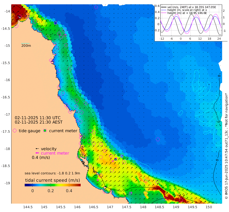 0cm/s -36T +11cm/s rms + 4cm/s -61T. GBRLSL 354m 19cm/s 21T +15cm/s rms + 2cm/s -84T. GBRLSH 32m 22cm/s 44T +15cm/s rms + 5cm/s -155T. GBRPPS 72m 8cm/s 41T +17cm/s rms + 13cm/s 115T. GBRMYR 223m 15cm/s 61T +18cm/s rms + 0cm/s -9T. NRSYON 29m 12cm Osprey Reef - West 31cm Stanley Island 22cm Pipon Islands 24cm Cape Melville 29cm Munro Reef 27cm Leggatt Island 39cm Normanby River 21cm Carter Reef 18cm Lizard Island (QLD) 31cm East Petherbridge Island 24cm North Direction Island 21cm Cape Flattery 14cm Ribbon Reef No.9 11cm Low Wooded Island 20cm Cape Bedford 12cm Endeavour River North 17cm Cooktown 9cm Cruiser Passage 10cm East Hope Island 30cm Bailay Creek 18cm Low Islets 17cm Port Douglas 11cm Palm Cove 10cm Yorkeys Knob 16cm Michaelmas Cay 3cm Euston Reef 18cm Cairns 3cm Green Island 7cm Fitzroy Island 13cm Sudbury Cay 4cm High Island -2cm Russell Island 10cm Peart Reef 9cm Nathan Reef 19cm Mourilyan Harbour 17cm Cowley Beach 32cm North Barnard Island 22cm Eddy Reef 28cm Beaver Reef 11cm Unnamed Reef No. 1 -1cm Flinders Reef 19cm Clump Point 17cm Dunk Island 17cm Barnett Patches 17cm Goold Island 38cm Cardwell 4cm Britomart Reef 13cm Pith Reef 6cm Dip Reef 25cm Lucinda (Offshore) 20cm John Brewer Reef 24cm Albino Rock 16cm Shrimp Reef 8cm Jaguar Reef 24cm Townsville 20cm Cape Ferguson 37cm Stanley Reef 46cm Wallaby Reef 28cm Kennedy Reef
