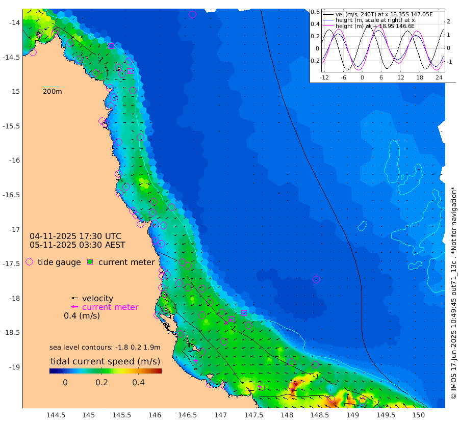 2cm/s 106T +11cm/s rms + 4cm/s -61T. GBRLSL 354m 10cm/s -146T +15cm/s rms + 2cm/s -84T. GBRLSH 32m 17cm/s -114T +15cm/s rms + 5cm/s -155T. GBRPPS 72m 5cm/s -112T +17cm/s rms + 13cm/s 115T. GBRMYR 223m 25cm/s -62T +18cm/s rms + 0cm/s -9T. NRSYON 29m -81cm Osprey Reef - West -105cm Stanley Island -79cm Pipon Islands -93cm Cape Melville -102cm Munro Reef -103cm Leggatt Island -121cm Normanby River -94cm Carter Reef -92cm Lizard Island (QLD) -102cm East Petherbridge Island -90cm North Direction Island -101cm Cape Flattery -91cm Ribbon Reef No.9 -104cm Low Wooded Island -87cm Cape Bedford -57cm Endeavour River North -94cm Cooktown -86cm Cruiser Passage -88cm East Hope Island -96cm Bailay Creek -89cm Low Islets -96cm Port Douglas -93cm Palm Cove -90cm Yorkeys Knob -91cm Michaelmas Cay -69cm Euston Reef -100cm Cairns -82cm Green Island -84cm Fitzroy Island -91cm Sudbury Cay -86cm High Island -73cm Russell Island -91cm Peart Reef -84cm Nathan Reef -100cm Mourilyan Harbour -98cm Cowley Beach -112cm North Barnard Island -103cm Eddy Reef -132cm Beaver Reef -91cm Unnamed Reef No. 1 -74cm Flinders Reef -104cm Clump Point -111cm Dunk Island -93cm Barnett Patches -112cm Goold Island -134cm Cardwell -95cm Britomart Reef -87cm Pith Reef -89cm Dip Reef -118cm Lucinda (Offshore) -108cm John Brewer Reef -117cm Albino Rock -97cm Shrimp Reef -82cm Jaguar Reef -123cm Townsville -114cm Cape Ferguson -120cm Stanley Reef -118cm Wallaby Reef -107cm Kennedy Reef