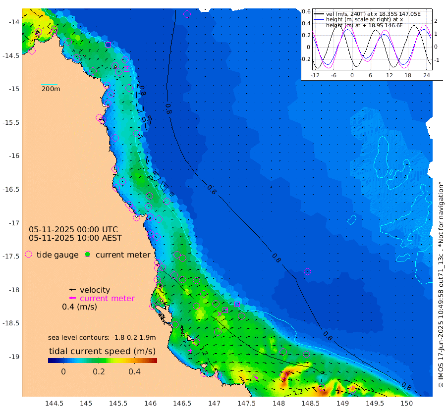 0cm/s -52T +11cm/s rms + 4cm/s -61T. GBRLSL 354m 10cm/s 38T +15cm/s rms + 2cm/s -84T. GBRLSH 32m 16cm/s 66T +15cm/s rms + 5cm/s -155T. GBRPPS 72m 5cm/s 64T +17cm/s rms + 13cm/s 115T. GBRMYR 223m 25cm/s 118T +18cm/s rms + 0cm/s -9T. NRSYON 29m 77cm Osprey Reef - West 98cm Stanley Island 75cm Pipon Islands 88cm Cape Melville 98cm Munro Reef 97cm Leggatt Island 107cm Normanby River 93cm Carter Reef 87cm Lizard Island (QLD) 92cm East Petherbridge Island 83cm North Direction Island 95cm Cape Flattery 86cm Ribbon Reef No.9 87cm Low Wooded Island 80cm Cape Bedford 50cm Endeavour River North 88cm Cooktown 81cm Cruiser Passage 85cm East Hope Island 86cm Bailay Creek 82cm Low Islets 91cm Port Douglas 88cm Palm Cove 85cm Yorkeys Knob 87cm Michaelmas Cay 70cm Euston Reef 94cm Cairns 80cm Green Island 85cm Fitzroy Island 87cm Sudbury Cay 81cm High Island 68cm Russell Island 84cm Peart Reef 80cm Nathan Reef 95cm Mourilyan Harbour 93cm Cowley Beach 105cm North Barnard Island 97cm Eddy Reef 123cm Beaver Reef 88cm Unnamed Reef No. 1 74cm Flinders Reef 99cm Clump Point 104cm Dunk Island 86cm Barnett Patches 106cm Goold Island 126cm Cardwell 90cm Britomart Reef 84cm Pith Reef 84cm Dip Reef 112cm Lucinda (Offshore) 102cm John Brewer Reef 111cm Albino Rock 95cm Shrimp Reef 86cm Jaguar Reef 117cm Townsville 110cm Cape Ferguson 115cm Stanley Reef 120cm Wallaby Reef 110cm Kennedy Reef