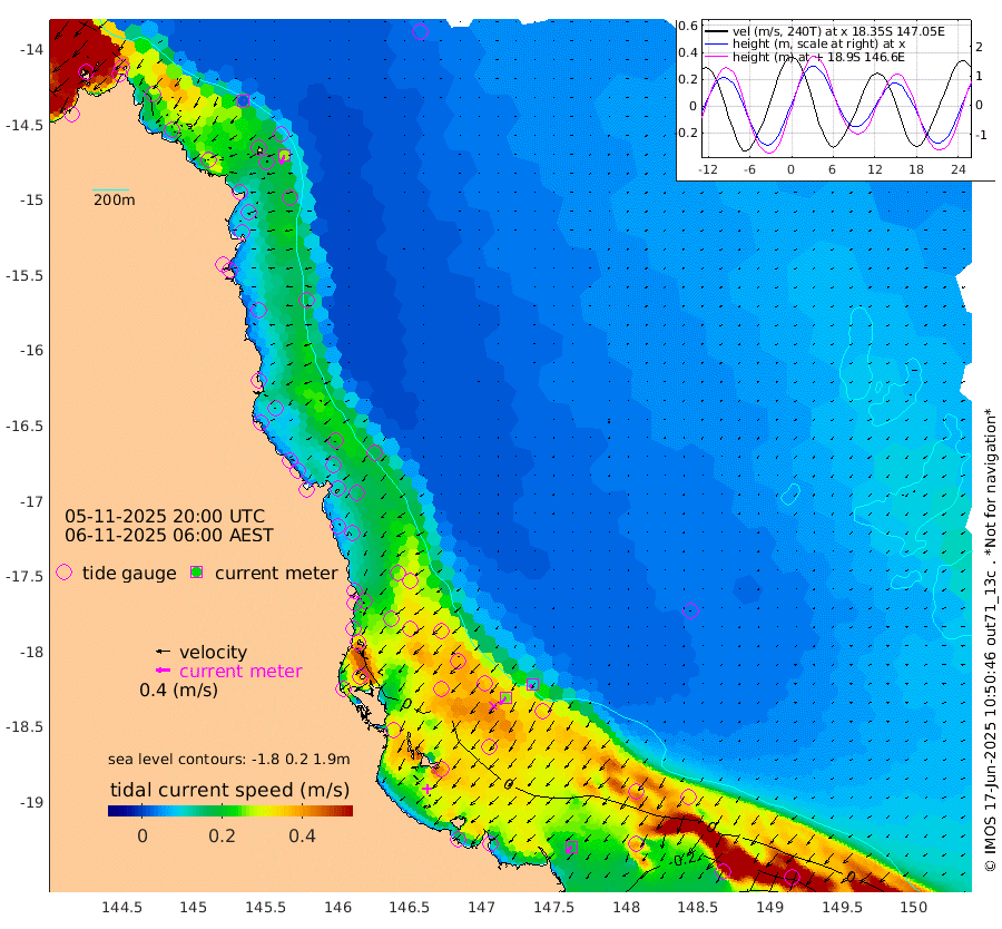2cm/s 128T +11cm/s rms + 4cm/s -61T. GBRLSL 354m 26cm/s -161T +15cm/s rms + 2cm/s -84T. GBRLSH 32m 26cm/s -138T +15cm/s rms + 5cm/s -155T. GBRPPS 72m 11cm/s -140T +17cm/s rms + 13cm/s 115T. GBRMYR 223m 18cm/s -140T +18cm/s rms + 0cm/s -9T. NRSYON 29m 3cm Osprey Reef - West -11cm Stanley Island -8cm Pipon Islands -11cm Cape Melville -10cm Munro Reef -10cm Leggatt Island -15cm Normanby River -6cm Carter Reef -4cm Lizard Island (QLD) -10cm East Petherbridge Island -5cm North Direction Island -4cm Cape Flattery 1cm Ribbon Reef No.9 -5cm Low Wooded Island -5cm Cape Bedford -2cm Endeavour River North -2cm Cooktown 5cm Cruiser Passage 7cm East Hope Island -17cm Bailay Creek -1cm Low Islets 1cm Port Douglas 7cm Palm Cove 7cm Yorkeys Knob -2cm Michaelmas Cay 16cm Euston Reef 0cm Cairns 14cm Green Island 11cm Fitzroy Island 4cm Sudbury Cay 6cm High Island 17cm Russell Island 7cm Peart Reef 9cm Nathan Reef -2cm Mourilyan Harbour 3cm Cowley Beach -23cm North Barnard Island -2cm Eddy Reef -4cm Beaver Reef 7cm Unnamed Reef No. 1 16cm Flinders Reef 0cm Clump Point -3cm Dunk Island 2cm Barnett Patches 1cm Goold Island -17cm Cardwell 13cm Britomart Reef 5cm Pith Reef 9cm Dip Reef -4cm Lucinda (Offshore) -7cm John Brewer Reef 1cm Albino Rock -3cm Shrimp Reef 10cm Jaguar Reef -1cm Townsville 1cm Cape Ferguson -29cm Stanley Reef -35cm Wallaby Reef -18cm Kennedy Reef