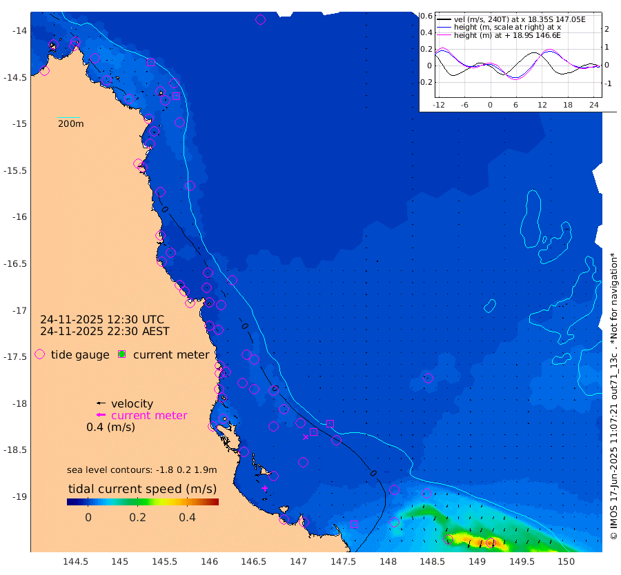1cm/s 120T +11cm/s rms + 4cm/s -61T. GBRLSL 354m 3cm/s 27T +15cm/s rms + 2cm/s -84T. GBRLSH 32m 1cm/s 44T +15cm/s rms + 5cm/s -155T. GBRPPS 72m 1cm/s -133T +17cm/s rms + 13cm/s 115T. GBRMYR 223m 4cm/s 146T +18cm/s rms + 0cm/s -9T. NRSYON 29m -8cm Osprey Reef - West -6cm Stanley Island 6cm Pipon Islands -8cm Cape Melville -5cm Munro Reef -3cm Leggatt Island -1cm Normanby River -10cm Carter Reef -9cm Lizard Island (QLD) -10cm East Petherbridge Island -13cm North Direction Island -5cm Cape Flattery -10cm Ribbon Reef No.9 -10cm Low Wooded Island -12cm Cape Bedford -5cm Endeavour River North -7cm Cooktown -11cm Cruiser Passage -6cm East Hope Island -8cm Bailay Creek -4cm Low Islets -6cm Port Douglas -7cm Palm Cove -9cm Yorkeys Knob -9cm Michaelmas Cay -10cm Euston Reef -5cm Cairns -10cm Green Island 1cm Fitzroy Island -5cm Sudbury Cay -7cm High Island -9cm Russell Island -10cm Peart Reef -8cm Nathan Reef -6cm Mourilyan Harbour -9cm Cowley Beach -2cm North Barnard Island -2cm Eddy Reef -4cm Beaver Reef -9cm Unnamed Reef No. 1 -13cm Flinders Reef -5cm Clump Point -6cm Dunk Island -12cm Barnett Patches -7cm Goold Island 0cm Cardwell -10cm Britomart Reef -9cm Pith Reef -12cm Dip Reef -4cm Lucinda (Offshore) -6cm John Brewer Reef -2cm Albino Rock -10cm Shrimp Reef -10cm Jaguar Reef -4cm Townsville -7cm Cape Ferguson -15cm Stanley Reef -17cm Wallaby Reef -9cm Kennedy Reef