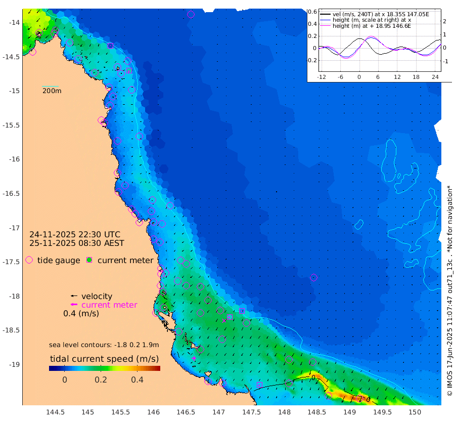 1cm/s -110T +11cm/s rms + 4cm/s -61T. GBRLSL 354m 12cm/s -161T +15cm/s rms + 2cm/s -84T. GBRLSH 32m 10cm/s -136T +15cm/s rms + 5cm/s -155T. GBRPPS 72m 4cm/s -137T +17cm/s rms + 13cm/s 115T. GBRMYR 223m 8cm/s -155T +18cm/s rms + 0cm/s -9T. NRSYON 29m 2cm Osprey Reef - West -3cm Stanley Island -11cm Pipon Islands -6cm Cape Melville -1cm Munro Reef -2cm Leggatt Island -1cm Normanby River 1cm Carter Reef 0cm Lizard Island (QLD) -7cm East Petherbridge Island -6cm North Direction Island 4cm Cape Flattery 6cm Ribbon Reef No.9 0cm Low Wooded Island -6cm Cape Bedford 1cm Endeavour River North 1cm Cooktown 7cm Cruiser Passage 4cm East Hope Island -13cm Bailay Creek 0cm Low Islets 2cm Port Douglas 5cm Palm Cove 7cm Yorkeys Knob 1cm Michaelmas Cay 0cm Euston Reef 1cm Cairns 10cm Green Island 14cm Fitzroy Island 6cm Sudbury Cay 2cm High Island 9cm Russell Island 9cm Peart Reef 8cm Nathan Reef 1cm Mourilyan Harbour 1cm Cowley Beach -5cm North Barnard Island -1cm Eddy Reef 2cm Beaver Reef 6cm Unnamed Reef No. 1 16cm Flinders Reef 2cm Clump Point 4cm Dunk Island 2cm Barnett Patches 2cm Goold Island -6cm Cardwell 7cm Britomart Reef 1cm Pith Reef 11cm Dip Reef 0cm Lucinda (Offshore) 6cm John Brewer Reef 3cm Albino Rock 0cm Shrimp Reef 3cm Jaguar Reef 1cm Townsville 1cm Cape Ferguson -14cm Stanley Reef -14cm Wallaby Reef -14cm Kennedy Reef