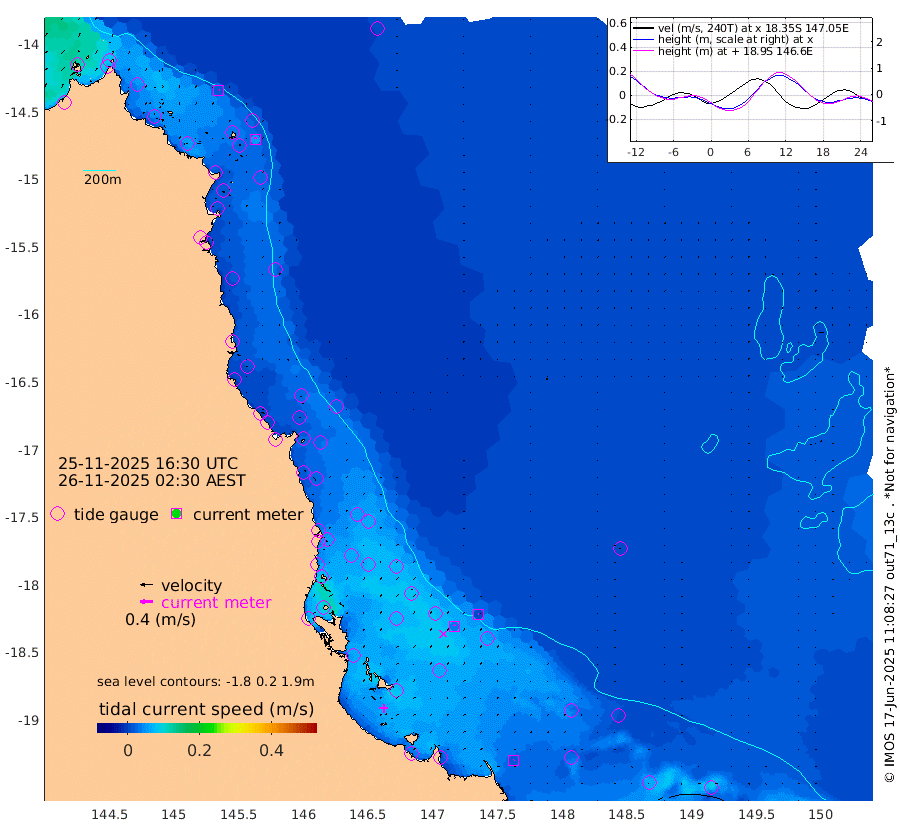 2cm/s 94T +11cm/s rms + 4cm/s -61T. GBRLSL 354m 5cm/s -1T +15cm/s rms + 2cm/s -84T. GBRLSH 32m 4cm/s 22T +15cm/s rms + 5cm/s -155T. GBRPPS 72m 1cm/s 68T +17cm/s rms + 13cm/s 115T. GBRMYR 223m 2cm/s 62T +18cm/s rms + 0cm/s -9T. NRSYON 29m -36cm Osprey Reef - West -36cm Stanley Island -8cm Pipon Islands -32cm Cape Melville -41cm Munro Reef -37cm Leggatt Island -36cm Normanby River -45cm Carter Reef -37cm Lizard Island (QLD) -36cm East Petherbridge Island -34cm North Direction Island -39cm Cape Flattery -45cm Ribbon Reef No.9 -51cm Low Wooded Island -32cm Cape Bedford -18cm Endeavour River North -38cm Cooktown -45cm Cruiser Passage -41cm East Hope Island -35cm Bailay Creek -36cm Low Islets -37cm Port Douglas -41cm Palm Cove -43cm Yorkeys Knob -36cm Michaelmas Cay -30cm Euston Reef -38cm Cairns -42cm Green Island -39cm Fitzroy Island -40cm Sudbury Cay -36cm High Island -37cm Russell Island -42cm Peart Reef -41cm Nathan Reef -37cm Mourilyan Harbour -35cm Cowley Beach -28cm North Barnard Island -38cm Eddy Reef -51cm Beaver Reef -40cm Unnamed Reef No. 1 -44cm Flinders Reef -37cm Clump Point -40cm Dunk Island -40cm Barnett Patches -38cm Goold Island -33cm Cardwell -42cm Britomart Reef -35cm Pith Reef -48cm Dip Reef -36cm Lucinda (Offshore) -40cm John Brewer Reef -38cm Albino Rock -37cm Shrimp Reef -31cm Jaguar Reef -35cm Townsville -35cm Cape Ferguson -31cm Stanley Reef -26cm Wallaby Reef -16cm Kennedy Reef