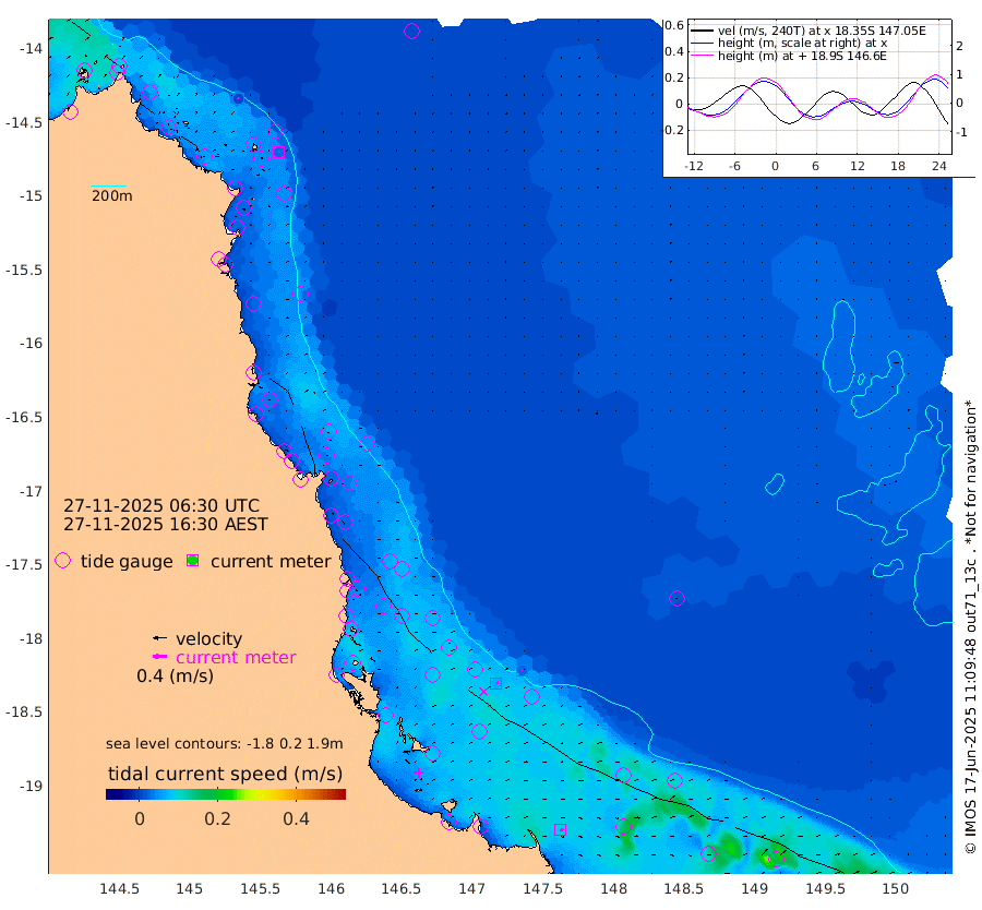 1cm/s -47T +11cm/s rms + 4cm/s -61T. GBRLSL 354m 2cm/s 71T +15cm/s rms + 2cm/s -84T. GBRLSH 32m 7cm/s 78T +15cm/s rms + 5cm/s -155T. GBRPPS 72m 3cm/s 66T +17cm/s rms + 13cm/s 115T. GBRMYR 223m 9cm/s 107T +18cm/s rms + 0cm/s -9T. NRSYON 29m 51cm Osprey Reef - West 68cm Stanley Island 47cm Pipon Islands 66cm Cape Melville 69cm Munro Reef 63cm Leggatt Island 68cm Normanby River 68cm Carter Reef 64cm Lizard Island (QLD) 72cm East Petherbridge Island 68cm North Direction Island 65cm Cape Flattery 59cm Ribbon Reef No.9 67cm Low Wooded Island 64cm Cape Bedford 29cm Endeavour River North 63cm Cooktown 57cm Cruiser Passage 68cm East Hope Island 69cm Bailay Creek 61cm Low Islets 63cm Port Douglas 61cm Palm Cove 58cm Yorkeys Knob 60cm Michaelmas Cay 59cm Euston Reef 65cm Cairns 56cm Green Island 57cm Fitzroy Island 59cm Sudbury Cay 58cm High Island 51cm Russell Island 59cm Peart Reef 56cm Nathan Reef 65cm Mourilyan Harbour 67cm Cowley Beach 67cm North Barnard Island 64cm Eddy Reef 84cm Beaver Reef 60cm Unnamed Reef No. 1 52cm Flinders Reef 66cm Clump Point 66cm Dunk Island 67cm Barnett Patches 69cm Goold Island 79cm Cardwell 65cm Britomart Reef 65cm Pith Reef 56cm Dip Reef 72cm Lucinda (Offshore) 68cm John Brewer Reef 70cm Albino Rock 72cm Shrimp Reef 60cm Jaguar Reef 75cm Townsville 73cm Cape Ferguson 78cm Stanley Reef 80cm Wallaby Reef 70cm Kennedy Reef