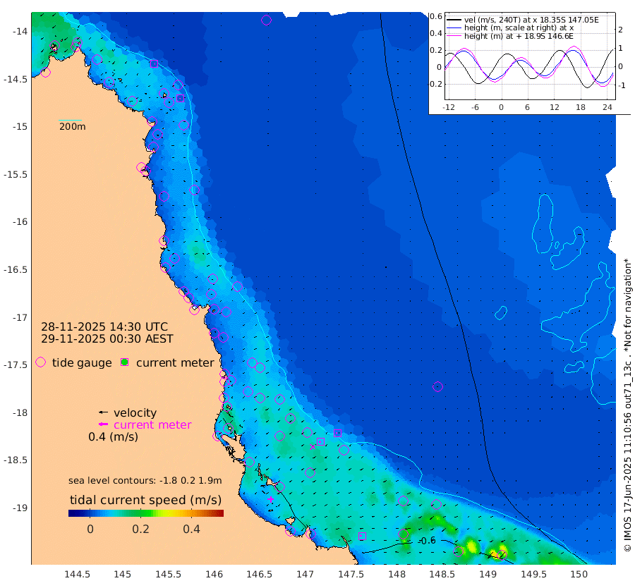 2cm/s 112T +11cm/s rms + 4cm/s -61T. GBRLSL 354m 2cm/s -145T +15cm/s rms + 2cm/s -84T. GBRLSH 32m 8cm/s -114T +15cm/s rms + 5cm/s -155T. GBRPPS 72m 3cm/s -117T +17cm/s rms + 13cm/s 115T. GBRMYR 223m 9cm/s -82T +18cm/s rms + 0cm/s -9T. NRSYON 29m -41cm Osprey Reef - West -56cm Stanley Island -26cm Pipon Islands -48cm Cape Melville -51cm Munro Reef -49cm Leggatt Island -61cm Normanby River -44cm Carter Reef -49cm Lizard Island (QLD) -60cm East Petherbridge Island -55cm North Direction Island -52cm Cape Flattery -48cm Ribbon Reef No.9 -53cm Low Wooded Island -53cm Cape Bedford -38cm Endeavour River North -49cm Cooktown -46cm Cruiser Passage -45cm East Hope Island -52cm Bailay Creek -46cm Low Islets -48cm Port Douglas -46cm Palm Cove -44cm Yorkeys Knob -47cm Michaelmas Cay -41cm Euston Reef -49cm Cairns -43cm Green Island -33cm Fitzroy Island -44cm Sudbury Cay -41cm High Island -40cm Russell Island -48cm Peart Reef -41cm Nathan Reef -50cm Mourilyan Harbour -54cm Cowley Beach -55cm North Barnard Island -50cm Eddy Reef -65cm Beaver Reef -47cm Unnamed Reef No. 1 -40cm Flinders Reef -52cm Clump Point -52cm Dunk Island -53cm Barnett Patches -56cm Goold Island -64cm Cardwell -46cm Britomart Reef -47cm Pith Reef -45cm Dip Reef -58cm Lucinda (Offshore) -54cm John Brewer Reef -58cm Albino Rock -53cm Shrimp Reef -44cm Jaguar Reef -61cm Townsville -58cm Cape Ferguson -66cm Stanley Reef -69cm Wallaby Reef -59cm Kennedy Reef
