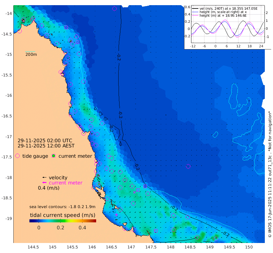 3cm/s -82T +11cm/s rms + 4cm/s -61T. GBRLSL 354m 5cm/s -144T +15cm/s rms + 2cm/s -84T. GBRLSH 32m 8cm/s -122T +15cm/s rms + 5cm/s -155T. GBRPPS 72m 3cm/s -119T +17cm/s rms + 13cm/s 115T. GBRMYR 223m 8cm/s -82T +18cm/s rms + 0cm/s -9T. NRSYON 29m -14cm Osprey Reef - West -34cm Stanley Island -36cm Pipon Islands -27cm Cape Melville -32cm Munro Reef -28cm Leggatt Island -35cm Normanby River -29cm Carter Reef -24cm Lizard Island (QLD) -34cm East Petherbridge Island -29cm North Direction Island -26cm Cape Flattery -16cm Ribbon Reef No.9 -13cm Low Wooded Island -27cm Cape Bedford -2cm Endeavour River North -24cm Cooktown -13cm Cruiser Passage -26cm East Hope Island -32cm Bailay Creek -24cm Low Islets -26cm Port Douglas -22cm Palm Cove -19cm Yorkeys Knob -22cm Michaelmas Cay -24cm Euston Reef -27cm Cairns -17cm Green Island -20cm Fitzroy Island -20cm Sudbury Cay -18cm High Island -15cm Russell Island -20cm Peart Reef -18cm Nathan Reef -27cm Mourilyan Harbour -30cm Cowley Beach -30cm North Barnard Island -25cm Eddy Reef -35cm Beaver Reef -19cm Unnamed Reef No. 1 -8cm Flinders Reef -29cm Clump Point -28cm Dunk Island -22cm Barnett Patches -30cm Goold Island -43cm Cardwell -25cm Britomart Reef -21cm Pith Reef -8cm Dip Reef -36cm Lucinda (Offshore) -29cm John Brewer Reef -34cm Albino Rock -27cm Shrimp Reef -23cm Jaguar Reef -39cm Townsville -35cm Cape Ferguson -35cm Stanley Reef -38cm Wallaby Reef -33cm Kennedy Reef