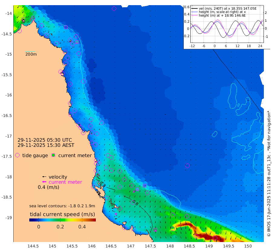 2cm/s -73T +11cm/s rms + 4cm/s -61T. GBRLSL 354m 12cm/s -166T +15cm/s rms + 2cm/s -84T. GBRLSH 32m 10cm/s -164T +15cm/s rms + 5cm/s -155T. GBRPPS 72m 5cm/s -160T +17cm/s rms + 13cm/s 115T. GBRMYR 223m 17cm/s 160T +18cm/s rms + 0cm/s -9T. NRSYON 29m 57cm Osprey Reef - West 64cm Stanley Island 54cm Pipon Islands 64cm Cape Melville 67cm Munro Reef 64cm Leggatt Island 70cm Normanby River 65cm Carter Reef 68cm Lizard Island (QLD) 62cm East Petherbridge Island 61cm North Direction Island 70cm Cape Flattery 65cm Ribbon Reef No.9 76cm Low Wooded Island 57cm Cape Bedford 36cm Endeavour River North 68cm Cooktown 66cm Cruiser Passage 77cm East Hope Island 59cm Bailay Creek 67cm Low Islets 69cm Port Douglas 72cm Palm Cove 72cm Yorkeys Knob 63cm Michaelmas Cay 58cm Euston Reef 71cm Cairns 69cm Green Island 81cm Fitzroy Island 70cm Sudbury Cay 74cm High Island 67cm Russell Island 72cm Peart Reef 70cm Nathan Reef 70cm Mourilyan Harbour 71cm Cowley Beach 73cm North Barnard Island 68cm Eddy Reef 93cm Beaver Reef 69cm Unnamed Reef No. 1 67cm Flinders Reef 74cm Clump Point 77cm Dunk Island 73cm Barnett Patches 80cm Goold Island 79cm Cardwell 80cm Britomart Reef 72cm Pith Reef 71cm Dip Reef 79cm Lucinda (Offshore) 79cm John Brewer Reef 78cm Albino Rock 76cm Shrimp Reef 66cm Jaguar Reef 83cm Townsville 81cm Cape Ferguson 68cm Stanley Reef 61cm Wallaby Reef 64cm Kennedy Reef