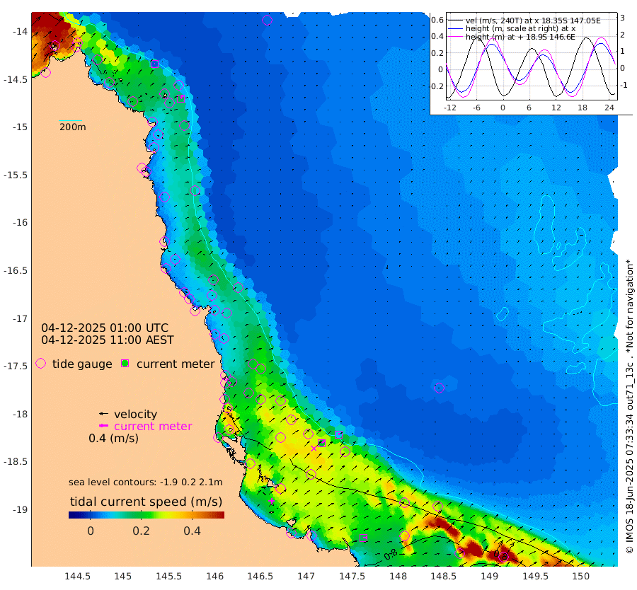2cm/s -64T +11cm/s rms + 4cm/s -61T. GBRLSL 354m 17cm/s 27T +15cm/s rms + 2cm/s -84T. GBRLSH 32m 20cm/s 53T +15cm/s rms + 5cm/s -155T. GBRPPS 72m 8cm/s 48T +17cm/s rms + 13cm/s 115T. GBRMYR 223m 17cm/s 85T +18cm/s rms + 0cm/s -9T. NRSYON 29m 58cm Osprey Reef - West 77cm Stanley Island 46cm Pipon Islands 71cm Cape Melville 76cm Munro Reef 75cm Leggatt Island 78cm Normanby River 75cm Carter Reef 68cm Lizard Island (QLD) 73cm East Petherbridge Island 67cm North Direction Island 71cm Cape Flattery 65cm Ribbon Reef No.9 66cm Low Wooded Island 64cm Cape Bedford 39cm Endeavour River North 67cm Cooktown 60cm Cruiser Passage 64cm East Hope Island 69cm Bailay Creek 61cm Low Islets 66cm Port Douglas 62cm Palm Cove 61cm Yorkeys Knob 68cm Michaelmas Cay 50cm Euston Reef 68cm Cairns 57cm Green Island 58cm Fitzroy Island 64cm Sudbury Cay 60cm High Island 48cm Russell Island 61cm Peart Reef 57cm Nathan Reef 70cm Mourilyan Harbour 67cm Cowley Beach 85cm North Barnard Island 70cm Eddy Reef 90cm Beaver Reef 64cm Unnamed Reef No. 1 53cm Flinders Reef 71cm Clump Point 75cm Dunk Island 65cm Barnett Patches 75cm Goold Island 92cm Cardwell 61cm Britomart Reef 64cm Pith Reef 62cm Dip Reef 79cm Lucinda (Offshore) 79cm John Brewer Reef 75cm Albino Rock 74cm Shrimp Reef 61cm Jaguar Reef 80cm Townsville 76cm Cape Ferguson 96cm Stanley Reef 103cm Wallaby Reef 86cm Kennedy Reef