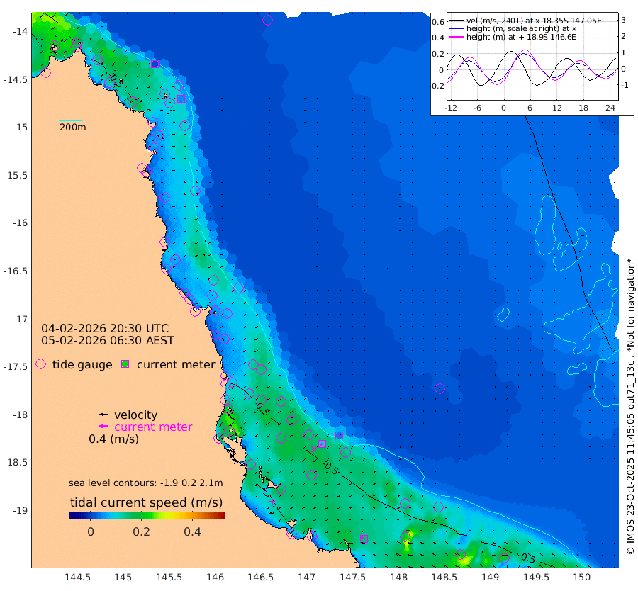 1cm/s -76T +11cm/s rms + 4cm/s -61T. GBRLSL 354m 5cm/s -140T +15cm/s rms + 2cm/s -84T. GBRLSH 32m 11cm/s -123T +15cm/s rms + 5cm/s -155T. GBRPPS 72m 4cm/s -127T +17cm/s rms + 13cm/s 115T. GBRMYR 223m 15cm/s -69T +18cm/s rms + 0cm/s -9T. NRSYON 29m -43cm Osprey Reef - West -48cm Stanley Island -59cm Pipon Islands -44cm Cape Melville -51cm Munro Reef -53cm Leggatt Island -61cm Normanby River -41cm Carter Reef -43cm Lizard Island (QLD) -44cm East Petherbridge Island -40cm North Direction Island -41cm Cape Flattery -43cm Ribbon Reef No.9 -45cm Low Wooded Island -36cm Cape Bedford -34cm Endeavour River North -43cm Cooktown -40cm Cruiser Passage -33cm East Hope Island -49cm Bailay Creek -41cm Low Islets -46cm Port Douglas -45cm Palm Cove -47cm Yorkeys Knob -40cm Michaelmas Cay -20cm Euston Reef -48cm Cairns -35cm Green Island -37cm Fitzroy Island -40cm Sudbury Cay -42cm High Island -26cm Russell Island -40cm Peart Reef -43cm Nathan Reef -48cm Mourilyan Harbour -45cm Cowley Beach -56cm North Barnard Island -52cm Eddy Reef -64cm Beaver Reef -44cm Unnamed Reef No. 1 -26cm Flinders Reef -50cm Clump Point -52cm Dunk Island -44cm Barnett Patches -55cm Goold Island -68cm Cardwell -44cm Britomart Reef -41cm Pith Reef -40cm Dip Reef -58cm Lucinda (Offshore) -45cm John Brewer Reef -55cm Albino Rock -40cm Shrimp Reef -37cm Jaguar Reef -60cm Townsville -55cm Cape Ferguson -61cm Stanley Reef -63cm Wallaby Reef -60cm Kennedy Reef