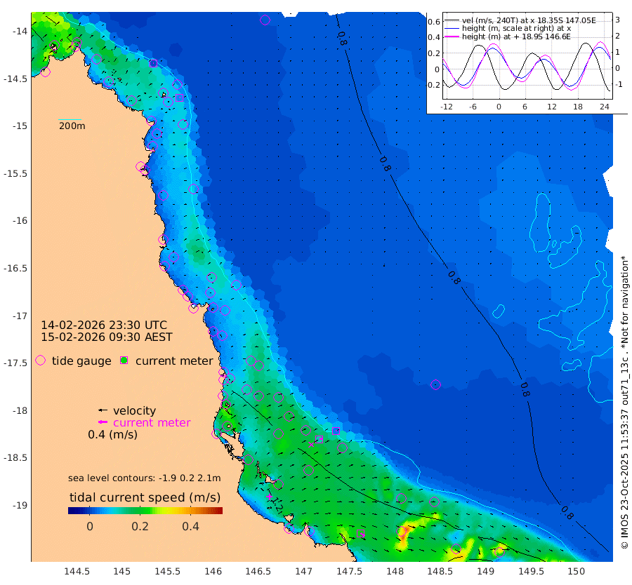 1cm/s -72T +11cm/s rms + 4cm/s -61T. GBRLSL 354m 4cm/s 53T +15cm/s rms + 2cm/s -84T. GBRLSH 32m 12cm/s 77T +15cm/s rms + 5cm/s -155T. GBRPPS 72m 4cm/s 71T +17cm/s rms + 13cm/s 115T. GBRMYR 223m 21cm/s 121T +18cm/s rms + 0cm/s -9T. NRSYON 29m 91cm Osprey Reef - West 112cm Stanley Island 73cm Pipon Islands 100cm Cape Melville 105cm Munro Reef 106cm Leggatt Island 120cm Normanby River 102cm Carter Reef 97cm Lizard Island (QLD) 115cm East Petherbridge Island 105cm North Direction Island 105cm Cape Flattery 97cm Ribbon Reef No.9 105cm Low Wooded Island 101cm Cape Bedford 61cm Endeavour River North 100cm Cooktown 93cm Cruiser Passage 95cm East Hope Island 102cm Bailay Creek 93cm Low Islets 102cm Port Douglas 99cm Palm Cove 94cm Yorkeys Knob 100cm Michaelmas Cay 94cm Euston Reef 104cm Cairns 93cm Green Island 84cm Fitzroy Island 98cm Sudbury Cay 90cm High Island 84cm Russell Island 95cm Peart Reef 88cm Nathan Reef 105cm Mourilyan Harbour 107cm Cowley Beach 103cm North Barnard Island 111cm Eddy Reef 136cm Beaver Reef 101cm Unnamed Reef No. 1 85cm Flinders Reef 109cm Clump Point 109cm Dunk Island 102cm Barnett Patches 115cm Goold Island 132cm Cardwell 101cm Britomart Reef 102cm Pith Reef 98cm Dip Reef 121cm Lucinda (Offshore) 104cm John Brewer Reef 120cm Albino Rock 105cm Shrimp Reef 95cm Jaguar Reef 126cm Townsville 119cm Cape Ferguson 122cm Stanley Reef 121cm Wallaby Reef 112cm Kennedy Reef