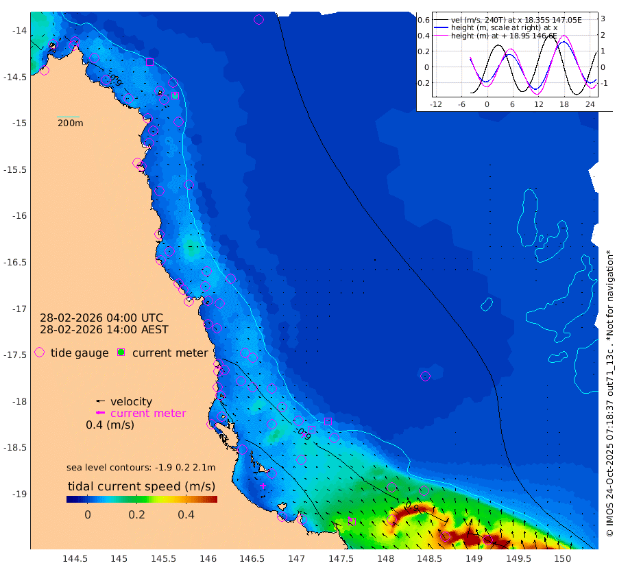 0cm/s 59T +11cm/s rms + 4cm/s -61T. GBRLSL 354m 11cm/s 6T +15cm/s rms + 2cm/s -84T. GBRLSH 32m 7cm/s -47T +15cm/s rms + 5cm/s -155T. GBRPPS 72m 4cm/s -21T +17cm/s rms + 13cm/s 115T. GBRMYR 223m 26cm/s -38T +18cm/s rms + 0cm/s -9T. NRSYON 29m -68cm Osprey Reef - West -91cm Stanley Island -79cm Pipon Islands -77cm Cape Melville -80cm Munro Reef -84cm Leggatt Island -110cm Normanby River -73cm Carter Reef -76cm Lizard Island (QLD) -84cm East Petherbridge Island -76cm North Direction Island -82cm Cape Flattery -73cm Ribbon Reef No.9 -77cm Low Wooded Island -73cm Cape Bedford -51cm Endeavour River North -80cm Cooktown -71cm Cruiser Passage -73cm East Hope Island -74cm Bailay Creek -73cm Low Islets -83cm Port Douglas -82cm Palm Cove -83cm Yorkeys Knob -79cm Michaelmas Cay -67cm Euston Reef -86cm Cairns -80cm Green Island -79cm Fitzroy Island -81cm Sudbury Cay -80cm High Island -79cm Russell Island -86cm Peart Reef -77cm Nathan Reef -84cm Mourilyan Harbour -91cm Cowley Beach -95cm North Barnard Island -80cm Eddy Reef -112cm Beaver Reef -81cm Unnamed Reef No. 1 -66cm Flinders Reef -93cm Clump Point -99cm Dunk Island -83cm Barnett Patches -102cm Goold Island -114cm Cardwell -91cm Britomart Reef -79cm Pith Reef -74cm Dip Reef -106cm Lucinda (Offshore) -95cm John Brewer Reef -106cm Albino Rock -81cm Shrimp Reef -76cm Jaguar Reef -115cm Townsville -107cm Cape Ferguson -95cm Stanley Reef -88cm Wallaby Reef -81cm Kennedy Reef