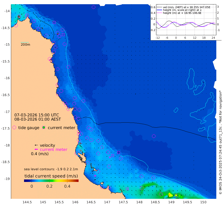 1cm/s 87T +11cm/s rms + 4cm/s -61T. GBRLSL 354m 2cm/s 42T +15cm/s rms + 2cm/s -84T. GBRLSH 32m 4cm/s 59T +15cm/s rms + 5cm/s -155T. GBRPPS 72m 0cm/s 72T +17cm/s rms + 13cm/s 115T. GBRMYR 223m 10cm/s 127T +18cm/s rms + 0cm/s -9T. NRSYON 29m 23cm Osprey Reef - West 13cm Stanley Island 24cm Pipon Islands 16cm Cape Melville 16cm Munro Reef 19cm Leggatt Island 17cm Normanby River 11cm Carter Reef 17cm Lizard Island (QLD) 12cm East Petherbridge Island 14cm North Direction Island 14cm Cape Flattery 17cm Ribbon Reef No.9 15cm Low Wooded Island 13cm Cape Bedford 24cm Endeavour River North 16cm Cooktown 17cm Cruiser Passage 10cm East Hope Island 15cm Bailay Creek 13cm Low Islets 18cm Port Douglas 19cm Palm Cove 18cm Yorkeys Knob 16cm Michaelmas Cay 11cm Euston Reef 19cm Cairns 13cm Green Island 10cm Fitzroy Island 16cm Sudbury Cay 18cm High Island 5cm Russell Island 12cm Peart Reef 15cm Nathan Reef 21cm Mourilyan Harbour 19cm Cowley Beach 21cm North Barnard Island 27cm Eddy Reef 24cm Beaver Reef 21cm Unnamed Reef No. 1 14cm Flinders Reef 22cm Clump Point 21cm Dunk Island 18cm Barnett Patches 24cm Goold Island 27cm Cardwell 17cm Britomart Reef 20cm Pith Reef 21cm Dip Reef 24cm Lucinda (Offshore) 10cm John Brewer Reef 26cm Albino Rock 19cm Shrimp Reef 25cm Jaguar Reef 26cm Townsville 25cm Cape Ferguson 31cm Stanley Reef 37cm Wallaby Reef 47cm Kennedy Reef