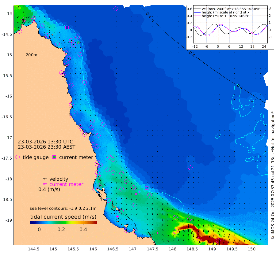 0cm/s -129T +11cm/s rms + 4cm/s -61T. GBRLSL 354m 15cm/s -173T +15cm/s rms + 2cm/s -84T. GBRLSH 32m 9cm/s -155T +15cm/s rms + 5cm/s -155T. GBRPPS 72m 5cm/s -139T +17cm/s rms + 13cm/s 115T. GBRMYR 223m 19cm/s 160T +18cm/s rms + 0cm/s -9T. NRSYON 29m 41cm Osprey Reef - West 32cm Stanley Island 38cm Pipon Islands 34cm Cape Melville 40cm Munro Reef 41cm Leggatt Island 41cm Normanby River 38cm Carter Reef 37cm Lizard Island (QLD) 27cm East Petherbridge Island 27cm North Direction Island 40cm Cape Flattery 43cm Ribbon Reef No.9 39cm Low Wooded Island 25cm Cape Bedford 27cm Endeavour River North 39cm Cooktown 43cm Cruiser Passage 40cm East Hope Island 26cm Bailay Creek 36cm Low Islets 42cm Port Douglas 45cm Palm Cove 46cm Yorkeys Knob 38cm Michaelmas Cay 32cm Euston Reef 44cm Cairns 43cm Green Island 53cm Fitzroy Island 45cm Sudbury Cay 42cm High Island 34cm Russell Island 41cm Peart Reef 44cm Nathan Reef 44cm Mourilyan Harbour 41cm Cowley Beach 39cm North Barnard Island 50cm Eddy Reef 57cm Beaver Reef 46cm Unnamed Reef No. 1 46cm Flinders Reef 47cm Clump Point 48cm Dunk Island 40cm Barnett Patches 49cm Goold Island 49cm Cardwell 48cm Britomart Reef 44cm Pith Reef 51cm Dip Reef 49cm Lucinda (Offshore) 40cm John Brewer Reef 53cm Albino Rock 41cm Shrimp Reef 46cm Jaguar Reef 52cm Townsville 50cm Cape Ferguson 35cm Stanley Reef 38cm Wallaby Reef 46cm Kennedy Reef