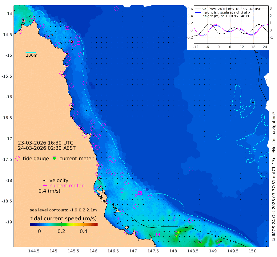 1cm/s -19T +11cm/s rms + 4cm/s -61T. GBRLSL 354m 3cm/s 112T +15cm/s rms + 2cm/s -84T. GBRLSH 32m 6cm/s 80T +15cm/s rms + 5cm/s -155T. GBRPPS 72m 1cm/s 87T +17cm/s rms + 13cm/s 115T. GBRMYR 223m 12cm/s 123T +18cm/s rms + 0cm/s -9T. NRSYON 29m 42cm Osprey Reef - West 49cm Stanley Island 47cm Pipon Islands 51cm Cape Melville 53cm Munro Reef 51cm Leggatt Island 47cm Normanby River 56cm Carter Reef 54cm Lizard Island (QLD) 43cm East Petherbridge Island 45cm North Direction Island 50cm Cape Flattery 46cm Ribbon Reef No.9 47cm Low Wooded Island 42cm Cape Bedford 24cm Endeavour River North 51cm Cooktown 45cm Cruiser Passage 55cm East Hope Island 47cm Bailay Creek 47cm Low Islets 52cm Port Douglas 52cm Palm Cove 52cm Yorkeys Knob 49cm Michaelmas Cay 38cm Euston Reef 53cm Cairns 48cm Green Island 57cm Fitzroy Island 51cm Sudbury Cay 55cm High Island 39cm Russell Island 49cm Peart Reef 50cm Nathan Reef 54cm Mourilyan Harbour 52cm Cowley Beach 64cm North Barnard Island 49cm Eddy Reef 68cm Beaver Reef 52cm Unnamed Reef No. 1 46cm Flinders Reef 56cm Clump Point 61cm Dunk Island 52cm Barnett Patches 61cm Goold Island 65cm Cardwell 58cm Britomart Reef 52cm Pith Reef 49cm Dip Reef 61cm Lucinda (Offshore) 62cm John Brewer Reef 58cm Albino Rock 62cm Shrimp Reef 55cm Jaguar Reef 64cm Townsville 62cm Cape Ferguson 70cm Stanley Reef 73cm Wallaby Reef 70cm Kennedy Reef