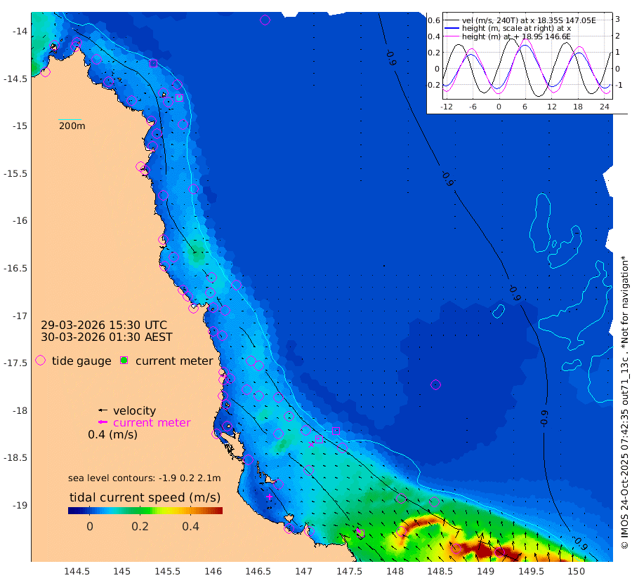 1cm/s -49T +11cm/s rms + 4cm/s -61T. GBRLSL 354m 10cm/s -2T +15cm/s rms + 2cm/s -84T. GBRLSH 32m 8cm/s -57T +15cm/s rms + 5cm/s -155T. GBRPPS 72m 3cm/s -34T +17cm/s rms + 13cm/s 115T. GBRMYR 223m 25cm/s -41T +18cm/s rms + 0cm/s -9T. NRSYON 29m -96cm Osprey Reef - West -120cm Stanley Island -104cm Pipon Islands -104cm Cape Melville -114cm Munro Reef -118cm Leggatt Island -136cm Normanby River -107cm Carter Reef -106cm Lizard Island (QLD) -114cm East Petherbridge Island -105cm North Direction Island -110cm Cape Flattery -102cm Ribbon Reef No.9 -108cm Low Wooded Island -100cm Cape Bedford -62cm Endeavour River North -109cm Cooktown -99cm Cruiser Passage -105cm East Hope Island -101cm Bailay Creek -106cm Low Islets -114cm Port Douglas -114cm Palm Cove -115cm Yorkeys Knob -103cm Michaelmas Cay -87cm Euston Reef -118cm Cairns -106cm Green Island -105cm Fitzroy Island -107cm Sudbury Cay -109cm High Island -100cm Russell Island -115cm Peart Reef -110cm Nathan Reef -116cm Mourilyan Harbour -118cm Cowley Beach -115cm North Barnard Island -113cm Eddy Reef -151cm Beaver Reef -111cm Unnamed Reef No. 1 -89cm Flinders Reef -123cm Clump Point -126cm Dunk Island -110cm Barnett Patches -133cm Goold Island -147cm Cardwell -123cm Britomart Reef -104cm Pith Reef -103cm Dip Reef -138cm Lucinda (Offshore) -123cm John Brewer Reef -134cm Albino Rock -107cm Shrimp Reef -99cm Jaguar Reef -146cm Townsville -137cm Cape Ferguson -121cm Stanley Reef -110cm Wallaby Reef -110cm Kennedy Reef