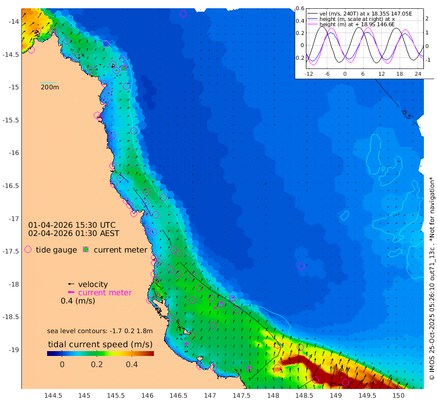 2cm/s -49T +11cm/s rms + 4cm/s -61T. GBRLSL 354m 17cm/s 14T +15cm/s rms + 2cm/s -84T. GBRLSH 32m 14cm/s 25T +15cm/s rms + 5cm/s -155T. GBRPPS 72m 7cm/s 28T +17cm/s rms + 13cm/s 115T. GBRMYR 223m 21cm/s -12T +18cm/s rms + 0cm/s -9T. NRSYON 29m -55cm Osprey Reef - West -59cm Stanley Island -50cm Pipon Islands -50cm Cape Melville -56cm Munro Reef -57cm Leggatt Island -68cm Normanby River -51cm Carter Reef -53cm Lizard Island (QLD) -64cm East Petherbridge Island -59cm North Direction Island -59cm Cape Flattery -57cm Ribbon Reef No.9 -64cm Low Wooded Island -57cm Cape Bedford -36cm Endeavour River North -58cm Cooktown -57cm Cruiser Passage -62cm East Hope Island -54cm Bailay Creek -57cm Low Islets -62cm Port Douglas -65cm Palm Cove -60cm Yorkeys Knob -55cm Michaelmas Cay -69cm Euston Reef -64cm Cairns -63cm Green Island -56cm Fitzroy Island -60cm Sudbury Cay -58cm High Island -63cm Russell Island -60cm Peart Reef -57cm Nathan Reef -62cm Mourilyan Harbour -68cm Cowley Beach -44cm North Barnard Island -69cm Eddy Reef -82cm Beaver Reef -63cm Unnamed Reef No. 1 -55cm Flinders Reef -67cm Clump Point -63cm Dunk Island -62cm Barnett Patches -71cm Goold Island -72cm Cardwell -70cm Britomart Reef -64cm Pith Reef -61cm Dip Reef -73cm Lucinda (Offshore) -53cm John Brewer Reef -79cm Albino Rock -59cm Shrimp Reef -61cm Jaguar Reef -79cm Townsville -75cm Cape Ferguson -47cm Stanley Reef -37cm Wallaby Reef -50cm Kennedy Reef