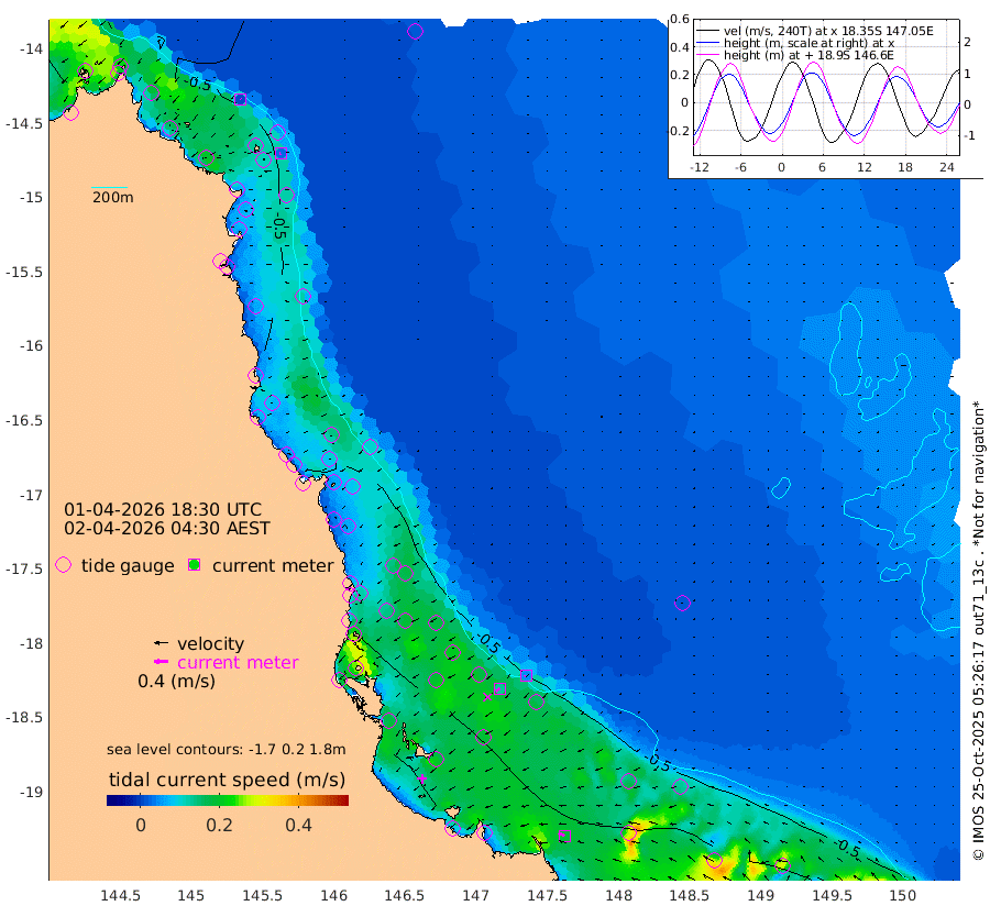 1cm/s -58T +11cm/s rms + 4cm/s -61T. GBRLSL 354m 3cm/s -110T +15cm/s rms + 2cm/s -84T. GBRLSH 32m 13cm/s -123T +15cm/s rms + 5cm/s -155T. GBRPPS 72m 4cm/s -126T +17cm/s rms + 13cm/s 115T. GBRMYR 223m 19cm/s -66T +18cm/s rms + 0cm/s -9T. NRSYON 29m -49cm Osprey Reef - West -59cm Stanley Island -63cm Pipon Islands -49cm Cape Melville -58cm Munro Reef -62cm Leggatt Island -77cm Normanby River -47cm Carter Reef -48cm Lizard Island (QLD) -54cm East Petherbridge Island -47cm North Direction Island -49cm Cape Flattery -49cm Ribbon Reef No.9 -49cm Low Wooded Island -43cm Cape Bedford -42cm Endeavour River North -50cm Cooktown -46cm Cruiser Passage -37cm East Hope Island -54cm Bailay Creek -47cm Low Islets -54cm Port Douglas -52cm Palm Cove -53cm Yorkeys Knob -47cm Michaelmas Cay -26cm Euston Reef -56cm Cairns -43cm Green Island -40cm Fitzroy Island -46cm Sudbury Cay -45cm High Island -32cm Russell Island -49cm Peart Reef -49cm Nathan Reef -57cm Mourilyan Harbour -54cm Cowley Beach -64cm North Barnard Island -60cm Eddy Reef -75cm Beaver Reef -52cm Unnamed Reef No. 1 -32cm Flinders Reef -59cm Clump Point -62cm Dunk Island -51cm Barnett Patches -65cm Goold Island -81cm Cardwell -50cm Britomart Reef -45cm Pith Reef -47cm Dip Reef -70cm Lucinda (Offshore) -54cm John Brewer Reef -69cm Albino Rock -46cm Shrimp Reef -45cm Jaguar Reef -73cm Townsville -67cm Cape Ferguson -71cm Stanley Reef -73cm Wallaby Reef -67cm Kennedy Reef