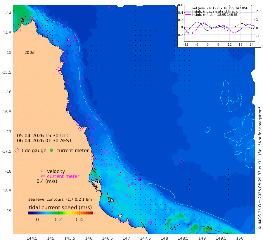 1cm/s -12T +11cm/s rms + 4cm/s -61T. GBRLSL 354m 3cm/s 40T +15cm/s rms + 2cm/s -84T. GBRLSH 32m 5cm/s 55T +15cm/s rms + 5cm/s -155T. GBRPPS 72m 1cm/s 51T +17cm/s rms + 13cm/s 115T. GBRMYR 223m 6cm/s 103T +18cm/s rms + 0cm/s -9T. NRSYON 29m 30cm Osprey Reef - West 21cm Stanley Island 23cm Pipon Islands 24cm Cape Melville 23cm Munro Reef 26cm Leggatt Island 21cm Normanby River 21cm Carter Reef 27cm Lizard Island (QLD) 22cm East Petherbridge Island 24cm North Direction Island 20cm Cape Flattery 26cm Ribbon Reef No.9 29cm Low Wooded Island 23cm Cape Bedford 29cm Endeavour River North 25cm Cooktown 26cm Cruiser Passage 19cm East Hope Island 27cm Bailay Creek 21cm Low Islets 25cm Port Douglas 26cm Palm Cove 27cm Yorkeys Knob 25cm Michaelmas Cay 17cm Euston Reef 26cm Cairns 22cm Green Island 12cm Fitzroy Island 23cm Sudbury Cay 28cm High Island 15cm Russell Island 21cm Peart Reef 23cm Nathan Reef 28cm Mourilyan Harbour 26cm Cowley Beach 29cm North Barnard Island 30cm Eddy Reef 32cm Beaver Reef 29cm Unnamed Reef No. 1 22cm Flinders Reef 28cm Clump Point 29cm Dunk Island 29cm Barnett Patches 31cm Goold Island 31cm Cardwell 25cm Britomart Reef 28cm Pith Reef 30cm Dip Reef 30cm Lucinda (Offshore) 20cm John Brewer Reef 30cm Albino Rock 29cm Shrimp Reef 31cm Jaguar Reef 30cm Townsville 31cm Cape Ferguson 46cm Stanley Reef 48cm Wallaby Reef 52cm Kennedy Reef