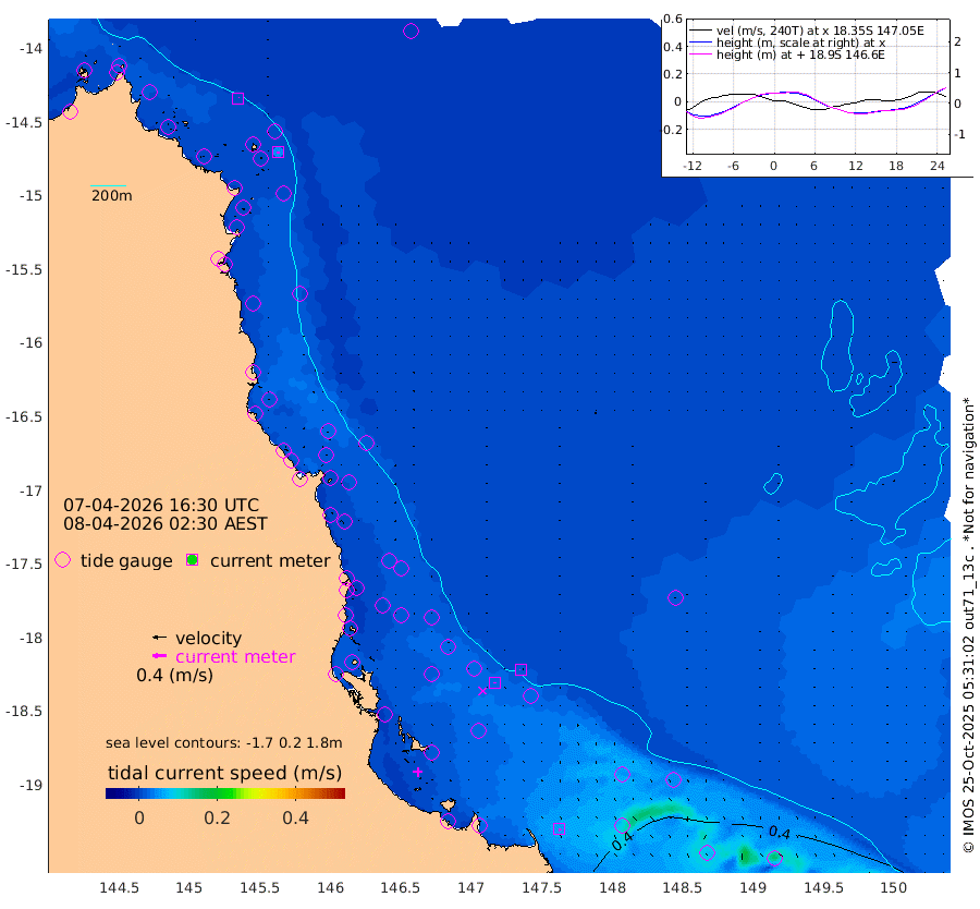1cm/s -33T +11cm/s rms + 4cm/s -61T. GBRLSL 354m 4cm/s 180T +15cm/s rms + 2cm/s -84T. GBRLSH 32m 3cm/s -177T +15cm/s rms + 5cm/s -155T. GBRPPS 72m 2cm/s -143T +17cm/s rms + 13cm/s 115T. GBRMYR 223m 6cm/s 148T +18cm/s rms + 0cm/s -9T. NRSYON 29m 32cm Osprey Reef - West 26cm Stanley Island 22cm Pipon Islands 30cm Cape Melville 27cm Munro Reef 27cm Leggatt Island 21cm Normanby River 30cm Carter Reef 33cm Lizard Island (QLD) 30cm East Petherbridge Island 33cm North Direction Island 28cm Cape Flattery 30cm Ribbon Reef No.9 38cm Low Wooded Island 32cm Cape Bedford 23cm Endeavour River North 31cm Cooktown 32cm Cruiser Passage 33cm East Hope Island 35cm Bailay Creek 27cm Low Islets 31cm Port Douglas 32cm Palm Cove 30cm Yorkeys Knob 31cm Michaelmas Cay 37cm Euston Reef 32cm Cairns 31cm Green Island 22cm Fitzroy Island 31cm Sudbury Cay 34cm High Island 26cm Russell Island 26cm Peart Reef 27cm Nathan Reef 33cm Mourilyan Harbour 34cm Cowley Beach 28cm North Barnard Island 36cm Eddy Reef 39cm Beaver Reef 35cm Unnamed Reef No. 1 31cm Flinders Reef 34cm Clump Point 33cm Dunk Island 36cm Barnett Patches 36cm Goold Island 33cm Cardwell 35cm Britomart Reef 38cm Pith Reef 35cm Dip Reef 35cm Lucinda (Offshore) 25cm John Brewer Reef 36cm Albino Rock 41cm Shrimp Reef 41cm Jaguar Reef 36cm Townsville 38cm Cape Ferguson 46cm Stanley Reef 46cm Wallaby Reef 52cm Kennedy Reef