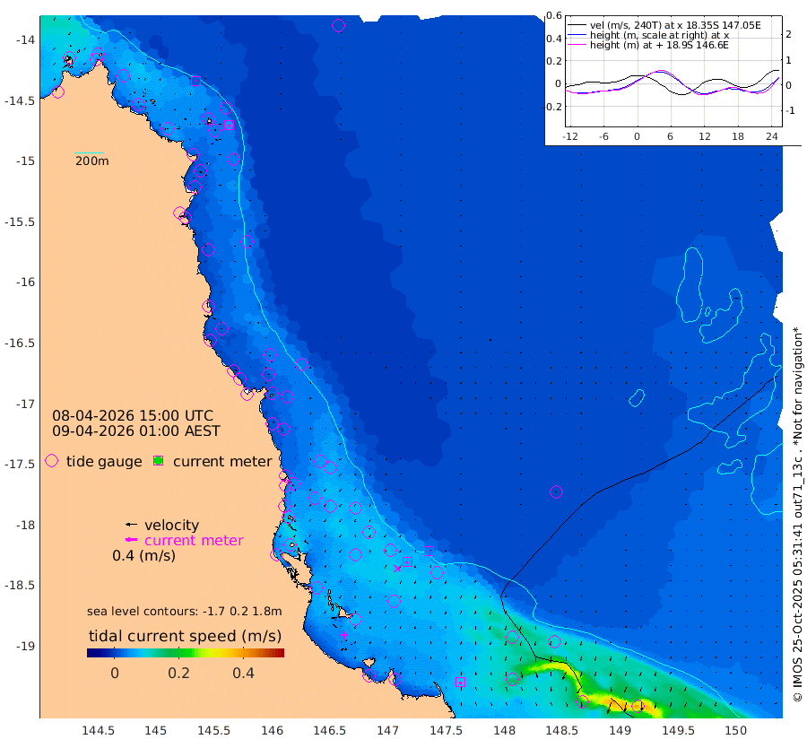 2cm/s -61T +11cm/s rms + 4cm/s -61T. GBRLSL 354m 5cm/s -174T +15cm/s rms + 2cm/s -84T. GBRLSH 32m 6cm/s -142T +15cm/s rms + 5cm/s -155T. GBRPPS 72m 4cm/s -124T +17cm/s rms + 13cm/s 115T. GBRMYR 223m 9cm/s 172T +18cm/s rms + 0cm/s -9T. NRSYON 29m 10cm Osprey Reef - West 3cm Stanley Island 3cm Pipon Islands 10cm Cape Melville 10cm Munro Reef 6cm Leggatt Island -2cm Normanby River 14cm Carter Reef 12cm Lizard Island (QLD) 4cm East Petherbridge Island 7cm North Direction Island 14cm Cape Flattery 12cm Ribbon Reef No.9 14cm Low Wooded Island 7cm Cape Bedford 3cm Endeavour River North 11cm Cooktown 13cm Cruiser Passage 20cm East Hope Island 10cm Bailay Creek 8cm Low Islets 11cm Port Douglas 11cm Palm Cove 7cm Yorkeys Knob 12cm Michaelmas Cay 22cm Euston Reef 11cm Cairns 12cm Green Island 21cm Fitzroy Island 15cm Sudbury Cay 11cm High Island 6cm Russell Island 4cm Peart Reef 7cm Nathan Reef 12cm Mourilyan Harbour 11cm Cowley Beach 10cm North Barnard Island 18cm Eddy Reef 15cm Beaver Reef 13cm Unnamed Reef No. 1 19cm Flinders Reef 12cm Clump Point 10cm Dunk Island 12cm Barnett Patches 10cm Goold Island 9cm Cardwell 12cm Britomart Reef 19cm Pith Reef 17cm Dip Reef 10cm Lucinda (Offshore) 7cm John Brewer Reef 15cm Albino Rock 23cm Shrimp Reef 24cm Jaguar Reef 10cm Townsville 12cm Cape Ferguson 12cm Stanley Reef 19cm Wallaby Reef 23cm Kennedy Reef