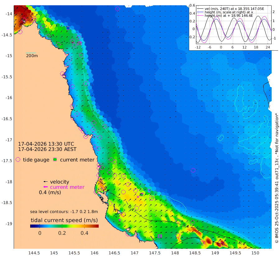 1cm/s -16T +11cm/s rms + 4cm/s -61T. GBRLSL 354m 19cm/s 23T +15cm/s rms + 2cm/s -84T. GBRLSH 32m 20cm/s 49T +15cm/s rms + 5cm/s -155T. GBRPPS 72m 7cm/s 45T +17cm/s rms + 13cm/s 115T. GBRMYR 223m 16cm/s 84T +18cm/s rms + 0cm/s -9T. NRSYON 29m 32cm Osprey Reef - West 46cm Stanley Island 33cm Pipon Islands 42cm Cape Melville 47cm Munro Reef 45cm Leggatt Island 48cm Normanby River 44cm Carter Reef 39cm Lizard Island (QLD) 43cm East Petherbridge Island 38cm North Direction Island 42cm Cape Flattery 37cm Ribbon Reef No.9 36cm Low Wooded Island 37cm Cape Bedford 24cm Endeavour River North 38cm Cooktown 32cm Cruiser Passage 33cm East Hope Island 45cm Bailay Creek 33cm Low Islets 38cm Port Douglas 33cm Palm Cove 30cm Yorkeys Knob 39cm Michaelmas Cay 26cm Euston Reef 40cm Cairns 26cm Green Island 29cm Fitzroy Island 35cm Sudbury Cay 30cm High Island 17cm Russell Island 29cm Peart Reef 27cm Nathan Reef 42cm Mourilyan Harbour 38cm Cowley Beach 56cm North Barnard Island 45cm Eddy Reef 53cm Beaver Reef 34cm Unnamed Reef No. 1 25cm Flinders Reef 42cm Clump Point 45cm Dunk Island 34cm Barnett Patches 44cm Goold Island 62cm Cardwell 30cm Britomart Reef 35cm Pith Reef 31cm Dip Reef 49cm Lucinda (Offshore) 44cm John Brewer Reef 47cm Albino Rock 44cm Shrimp Reef 37cm Jaguar Reef 50cm Townsville 46cm Cape Ferguson 67cm Stanley Reef 78cm Wallaby Reef 66cm Kennedy Reef