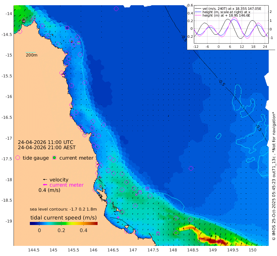 0cm/s -111T +11cm/s rms + 4cm/s -61T. GBRLSL 354m 12cm/s 9T +15cm/s rms + 2cm/s -84T. GBRLSH 32m 11cm/s 19T +15cm/s rms + 5cm/s -155T. GBRPPS 72m 6cm/s 28T +17cm/s rms + 13cm/s 115T. GBRMYR 223m 12cm/s -9T +18cm/s rms + 0cm/s -9T. NRSYON 29m -50cm Osprey Reef - West -48cm Stanley Island -56cm Pipon Islands -51cm Cape Melville -51cm Munro Reef -53cm Leggatt Island -49cm Normanby River -53cm Carter Reef -55cm Lizard Island (QLD) -45cm East Petherbridge Island -48cm North Direction Island -50cm Cape Flattery -49cm Ribbon Reef No.9 -56cm Low Wooded Island -44cm Cape Bedford -25cm Endeavour River North -54cm Cooktown -50cm Cruiser Passage -59cm East Hope Island -45cm Bailay Creek -53cm Low Islets -57cm Port Douglas -60cm Palm Cove -61cm Yorkeys Knob -48cm Michaelmas Cay -45cm Euston Reef -58cm Cairns -56cm Green Island -61cm Fitzroy Island -55cm Sudbury Cay -63cm High Island -51cm Russell Island -57cm Peart Reef -60cm Nathan Reef -57cm Mourilyan Harbour -56cm Cowley Beach -51cm North Barnard Island -55cm Eddy Reef -72cm Beaver Reef -59cm Unnamed Reef No. 1 -50cm Flinders Reef -60cm Clump Point -61cm Dunk Island -57cm Barnett Patches -65cm Goold Island -62cm Cardwell -69cm Britomart Reef -56cm Pith Reef -57cm Dip Reef -63cm Lucinda (Offshore) -58cm John Brewer Reef -61cm Albino Rock -58cm Shrimp Reef -55cm Jaguar Reef -67cm Townsville -66cm Cape Ferguson -55cm Stanley Reef -45cm Wallaby Reef -59cm Kennedy Reef