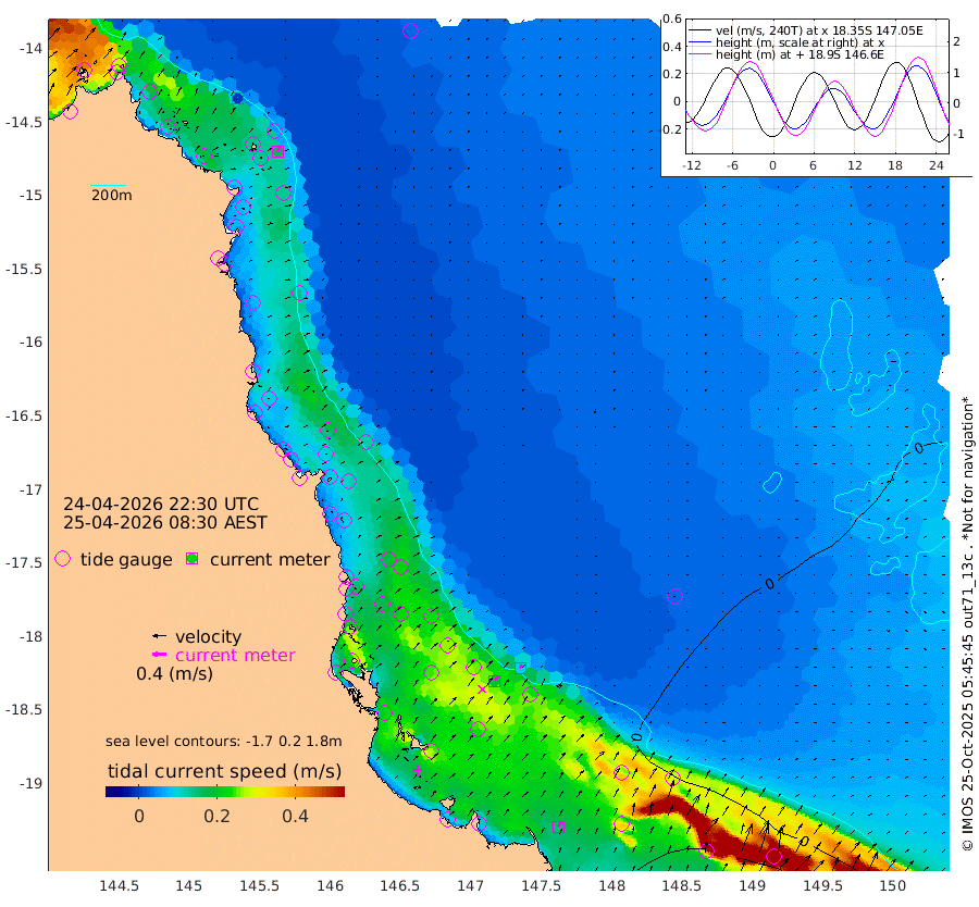 0cm/s 50T +11cm/s rms + 4cm/s -61T. GBRLSL 354m 17cm/s 22T +15cm/s rms + 2cm/s -84T. GBRLSH 32m 19cm/s 44T +15cm/s rms + 5cm/s -155T. GBRPPS 72m 9cm/s 38T +17cm/s rms + 13cm/s 115T. GBRMYR 223m 15cm/s 31T +18cm/s rms + 0cm/s -9T. NRSYON 29m 14cm Osprey Reef - West 33cm Stanley Island 5cm Pipon Islands 23cm Cape Melville 32cm Munro Reef 28cm Leggatt Island 33cm Normanby River 28cm Carter Reef 21cm Lizard Island (QLD) 32cm East Petherbridge Island 25cm North Direction Island 23cm Cape Flattery 19cm Ribbon Reef No.9 17cm Low Wooded Island 23cm Cape Bedford 12cm Endeavour River North 20cm Cooktown 15cm Cruiser Passage 18cm East Hope Island 30cm Bailay Creek 22cm Low Islets 19cm Port Douglas 14cm Palm Cove 15cm Yorkeys Knob 20cm Michaelmas Cay 8cm Euston Reef 19cm Cairns 11cm Green Island 11cm Fitzroy Island 17cm Sudbury Cay 10cm High Island 9cm Russell Island 18cm Peart Reef 15cm Nathan Reef 20cm Mourilyan Harbour 17cm Cowley Beach 31cm North Barnard Island 19cm Eddy Reef 31cm Beaver Reef 13cm Unnamed Reef No. 1 7cm Flinders Reef 18cm Clump Point 19cm Dunk Island 19cm Barnett Patches 17cm Goold Island 30cm Cardwell 8cm Britomart Reef 14cm Pith Reef 10cm Dip Reef 21cm Lucinda (Offshore) 26cm John Brewer Reef 17cm Albino Rock 17cm Shrimp Reef 6cm Jaguar Reef 18cm Townsville 16cm Cape Ferguson 31cm Stanley Reef 33cm Wallaby Reef 13cm Kennedy Reef